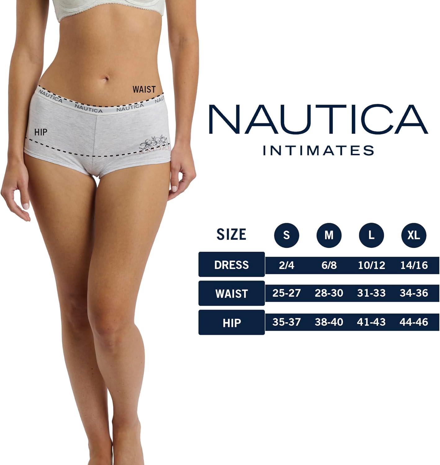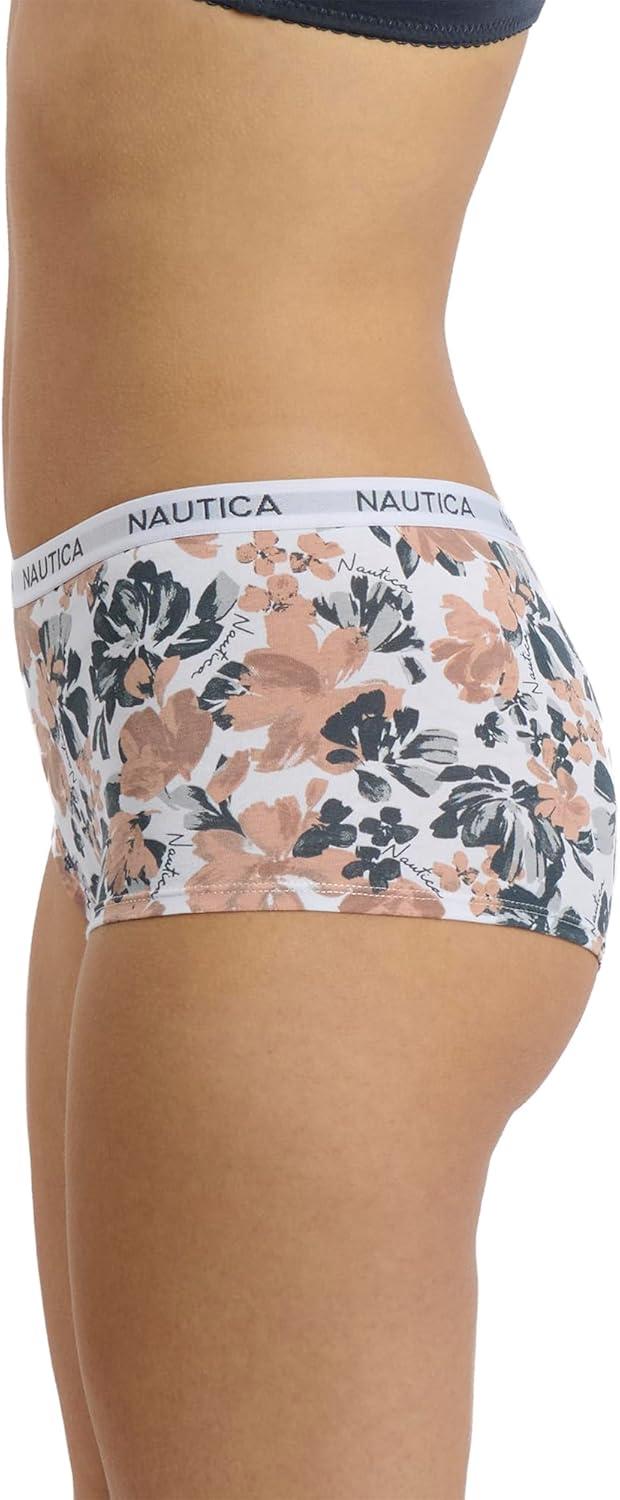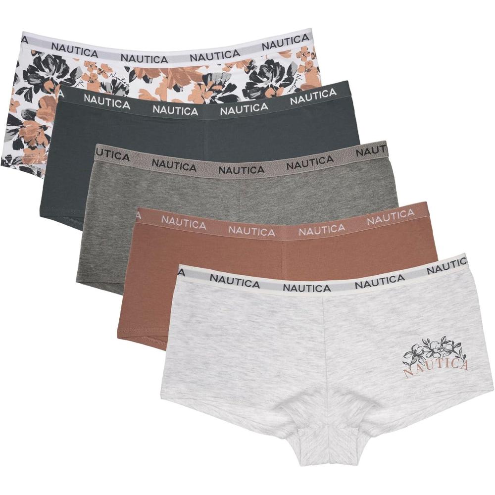 Our story began in 1983 with one clear vision: to create nautical-inspired, quality pieces that allow people across the world to realize and experience the joy of the water. Starting with only six outerwear pieces, Nautica grew into a renowned global lifestyle brand with over 35 categories in more than 65 countries. Now, as we look towards the future of Nautica, we strive to be more reflective of the rapidly changing world around us, and connect with it in new ways: through sustainability, social responsibility, and smart functional design you want to live your life in. Nautica's coordinated 5-Pack Cotton Boyshort Panty Sets are designed with you in mind. We start with soft, smooth cotton fabric and add a touch of spandex for a move-with-you fit while maintaining breathability. Next, we choose a variety of brand-forward colors and prints we are confident you will love. Finally, we updated our underwear with a tag-free design, so you never have to worry about scratching or adjusting throughout the day. Finished with a stretchy branded waistband for a classic, high quality touch and a stay-in-place design. Experience the timeless look and quality of Nautica today.