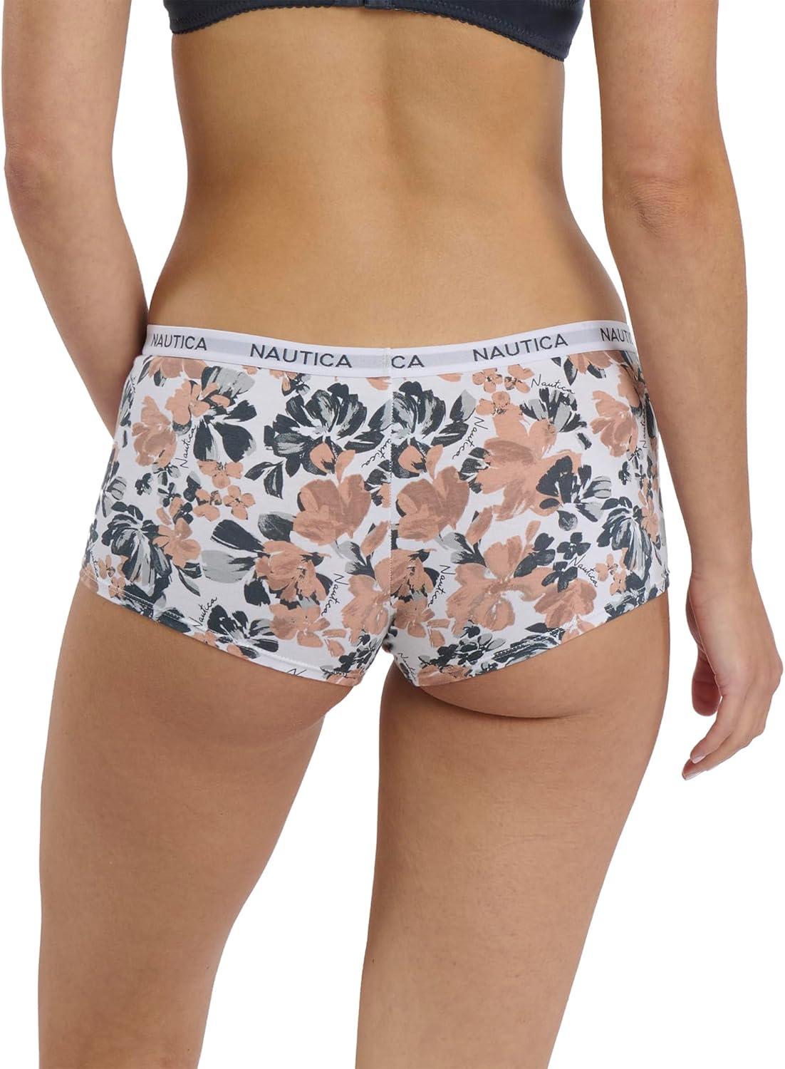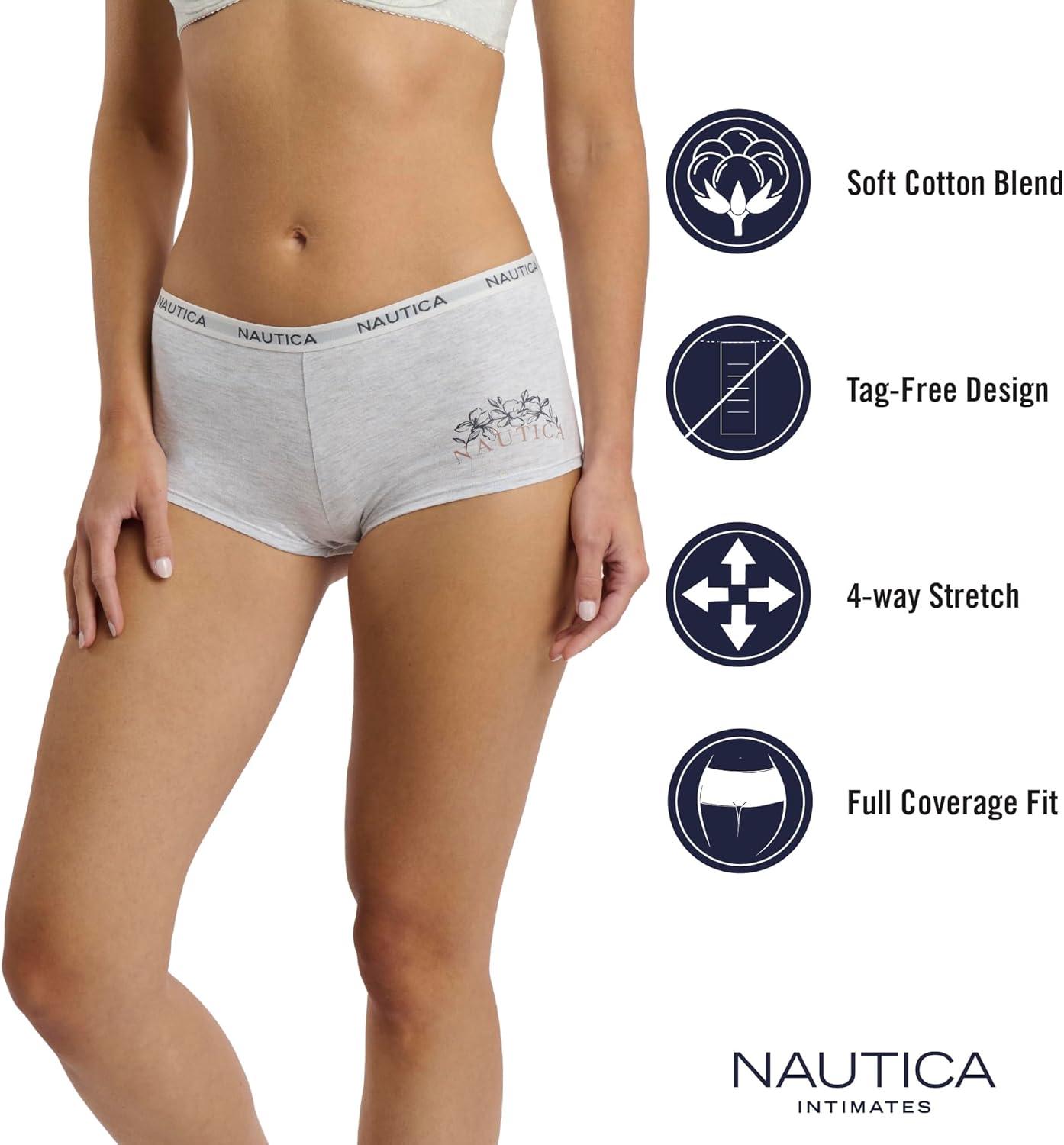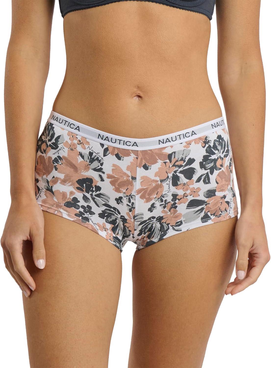 Our story began in 1983 with one clear vision: to create nautical-inspired, quality pieces that allow people across the world to realize and experience the joy of the water. Starting with only six outerwear pieces, Nautica grew into a renowned global lifestyle brand with over 35 categories in more than 65 countries. Now, as we look towards the future of Nautica, we strive to be more reflective of the rapidly changing world around us, and connect with it in new ways: through sustainability, social responsibility, and smart functional design you want to live your life in. Nautica's coordinated 5-Pack Cotton Boyshort Panty Sets are designed with you in mind. We start with soft, smooth cotton fabric and add a touch of spandex for a move-with-you fit while maintaining breathability. Next, we choose a variety of brand-forward colors and prints we are confident you will love. Finally, we updated our underwear with a tag-free design, so you never have to worry about scratching or adjusting throughout the day. Finished with a stretchy branded waistband for a classic, high quality touch and a stay-in-place design. Experience the timeless look and quality of Nautica today.