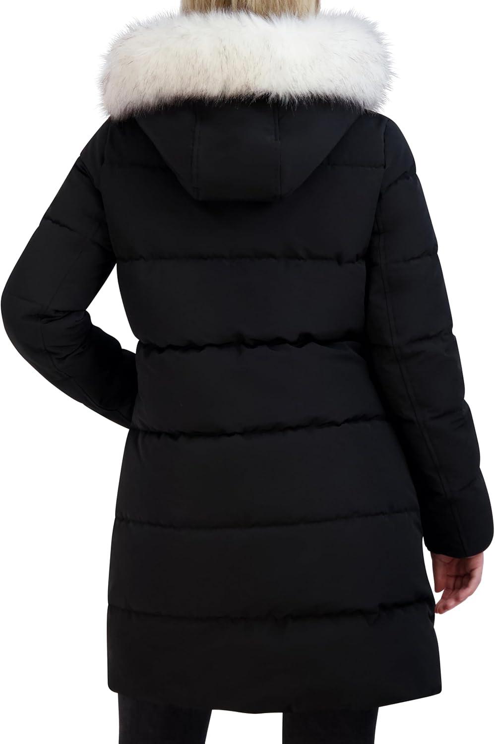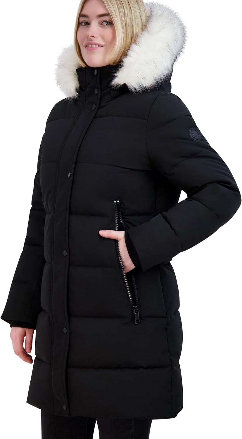 Nautica womens Heavyweight Puffer Jacket-faux Fur-lined Hood Wind Water-resistant Winter Coat(Onyx)