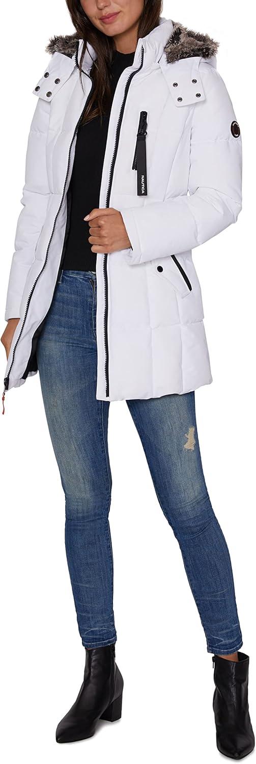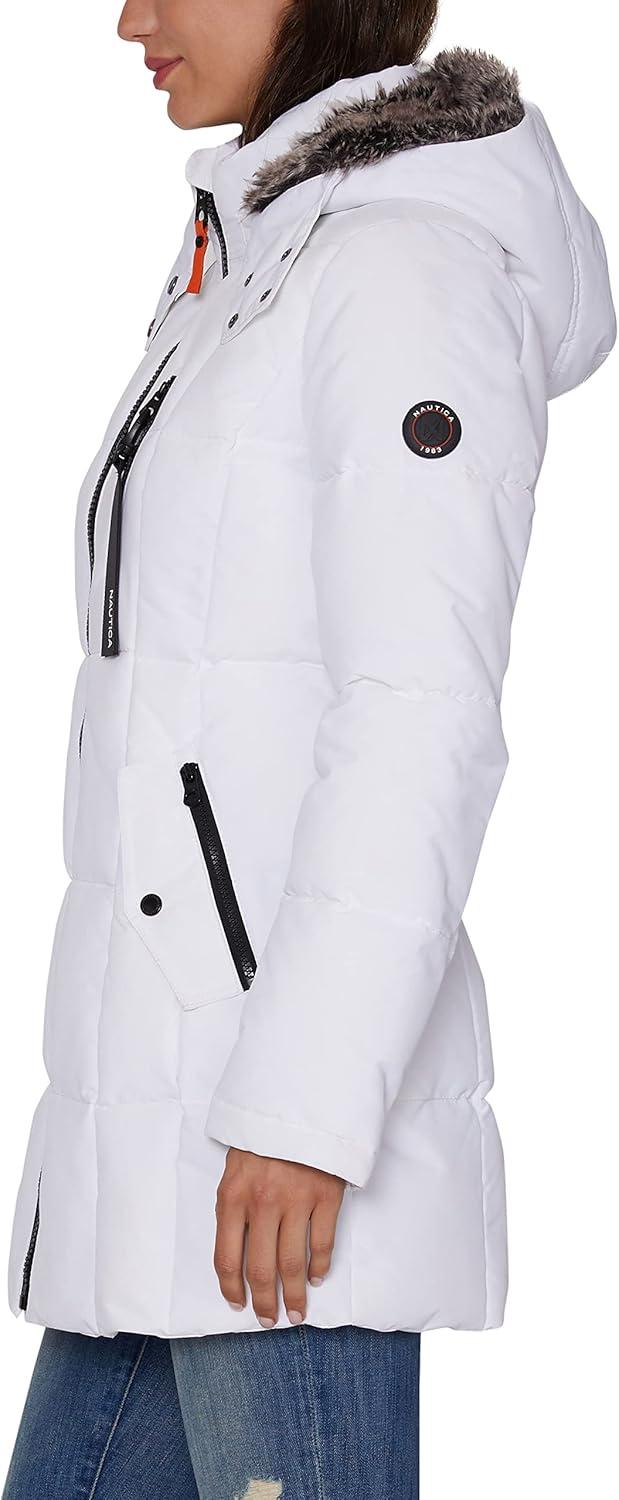 Nautica womens Heavyweight Puffer Jacket With Faux Fur Lined Hood(Winter White)