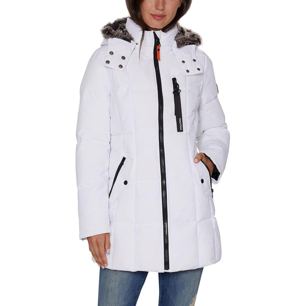 imageNautica womens Heavyweight Puffer Jacket With Faux Fur Lined HoodWinter White