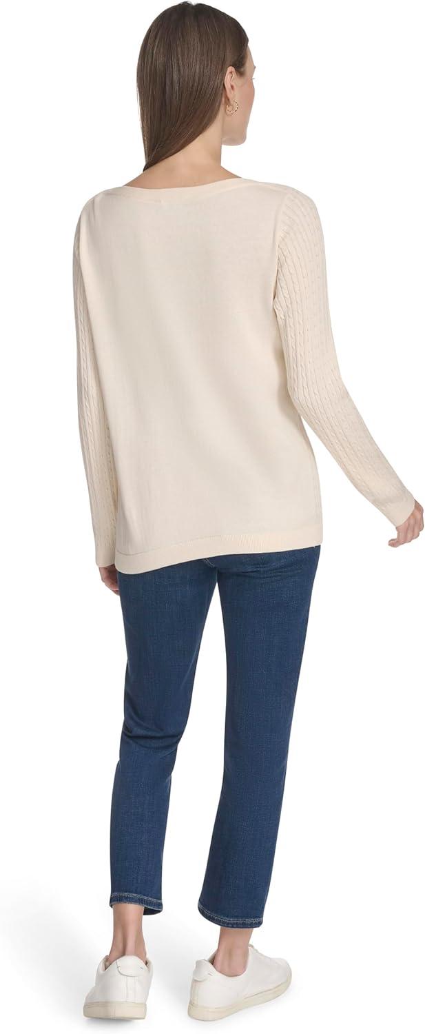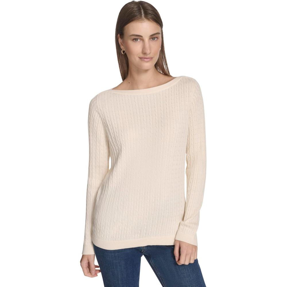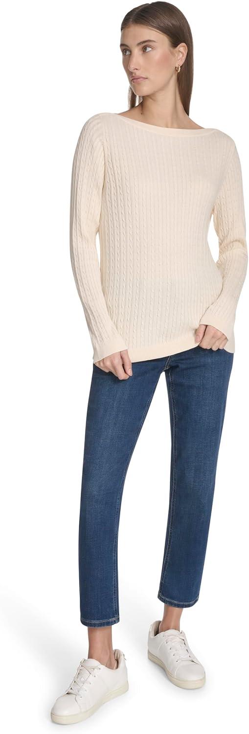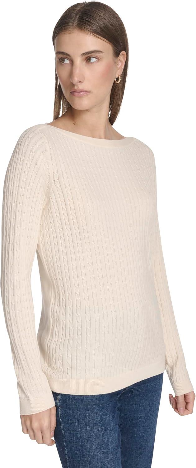 Nautica Women's Long Sleeve Cable Boatneck Sweater(White Swan)