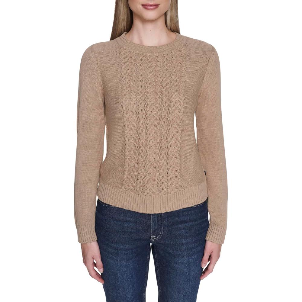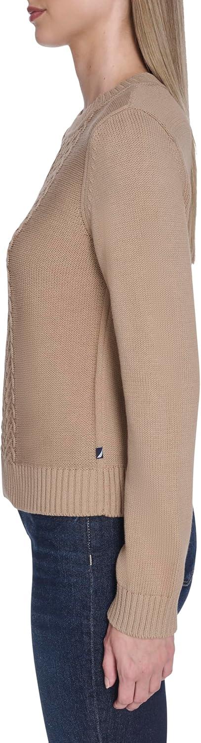 Nautica Women's Long Sleeve Cable Crewneck Sweater(Camel)