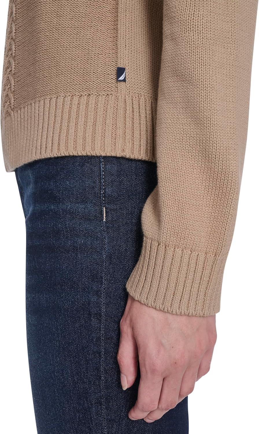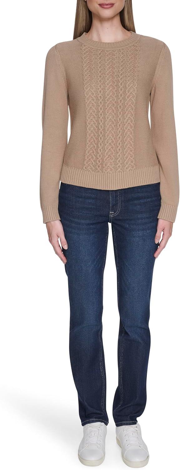 Nautica Women’s Long Sleeve Cable Crewneck Sweater(Camel)