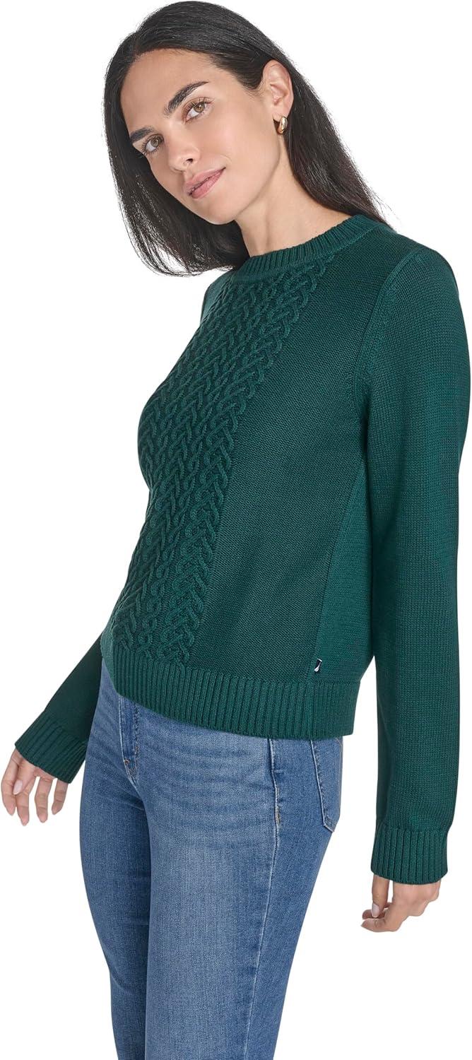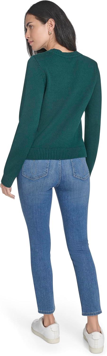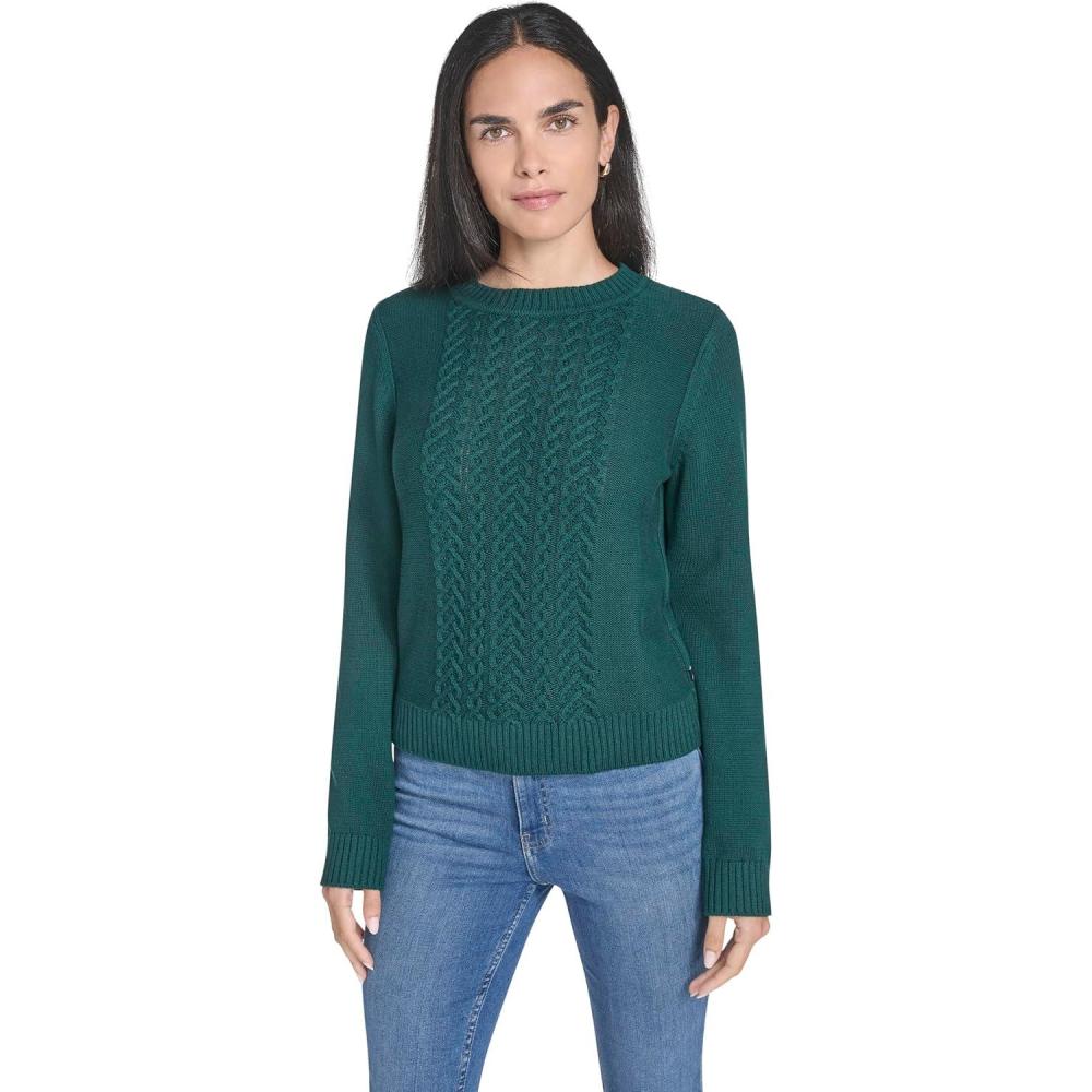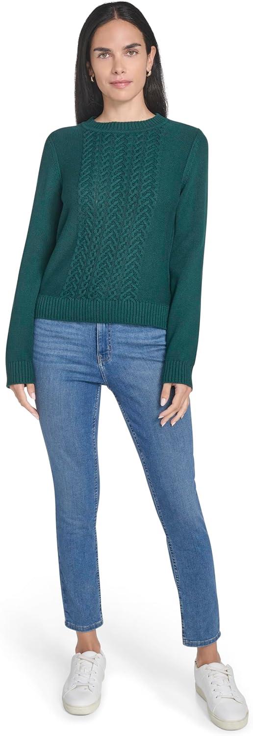 Nautica Women’s Long Sleeve Cable Crewneck Sweater(Forest)