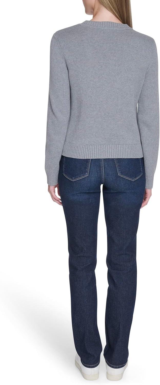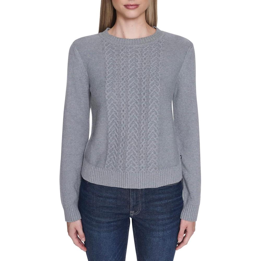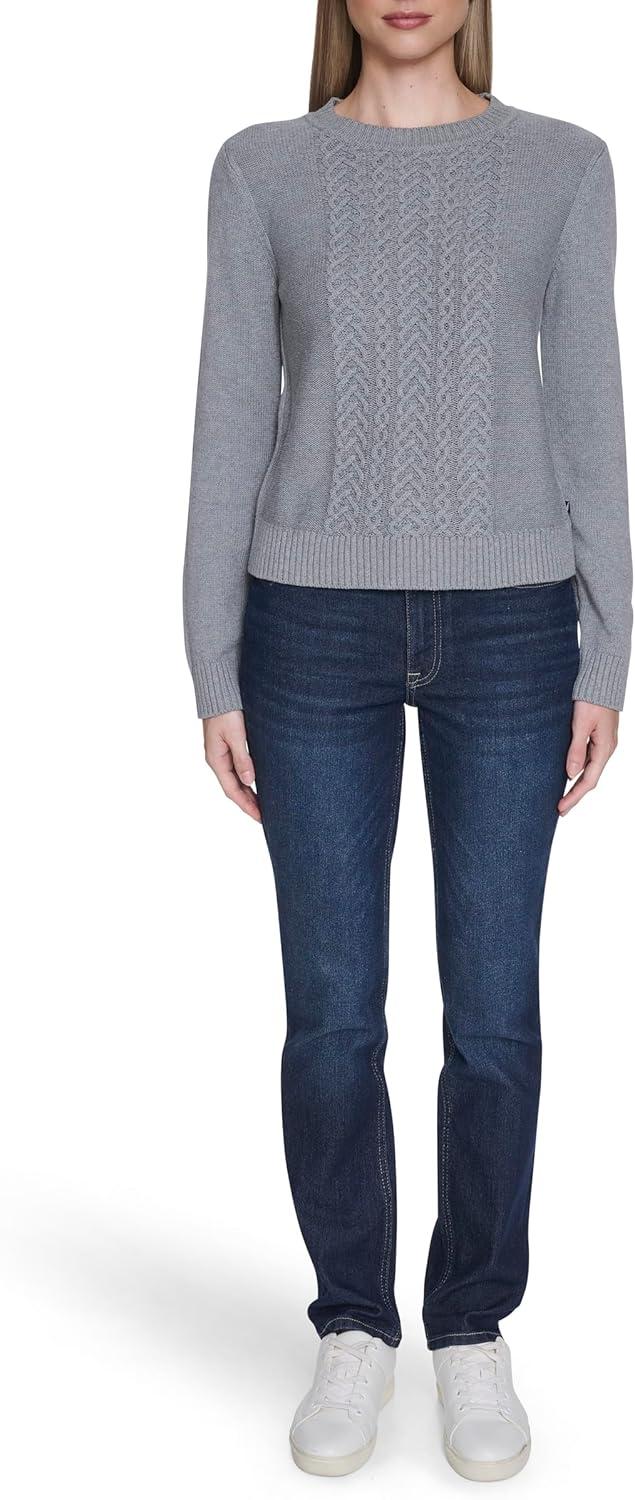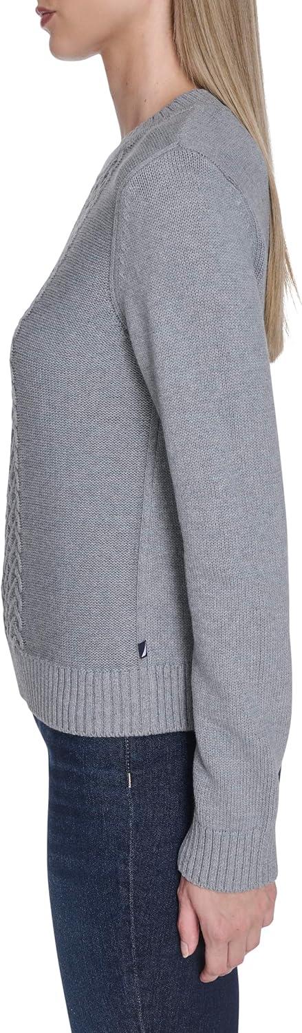 Nautica Women’s Long Sleeve Cable Crewneck Sweater(Mist Heather)