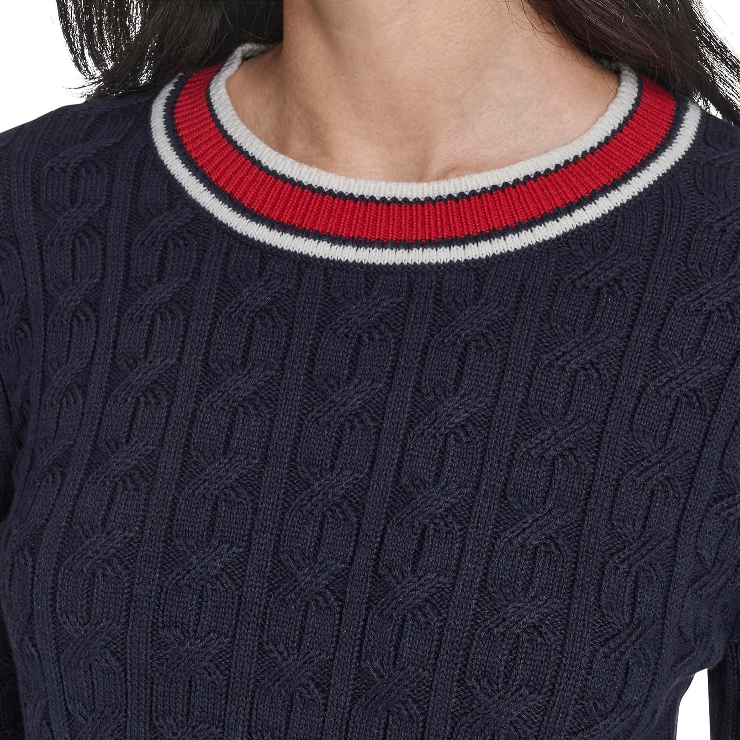 Nautica Women’s Long Sleeve Cable Crewneck Sweater(Night Sky)