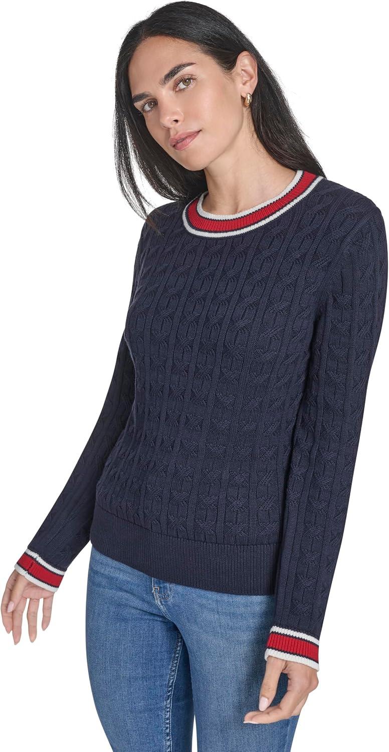 Nautica Women's Long Sleeve Cable Crewneck Sweater(Night Sky Multi)