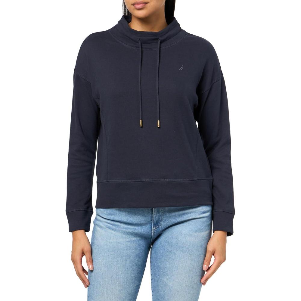 This Nautica Women's Jeans Mock Neck Pullover Sweatshirt is a Long Sleeve Mock Neck Pullover Solid Sweatshirt