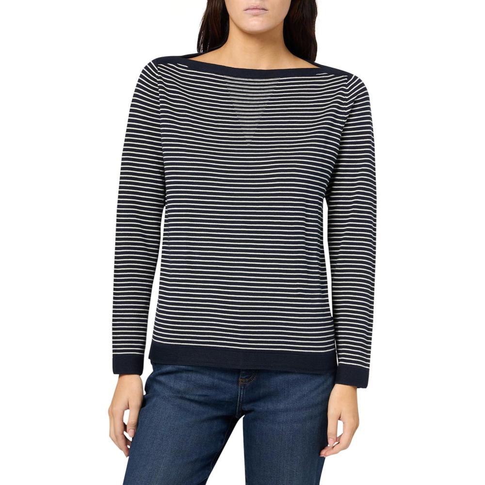 This Nautica Women's Jeans Long Sleeve Stripe Boatneck Sweater is a Long Sleeve Striped Boatneck Lightweight Sweater