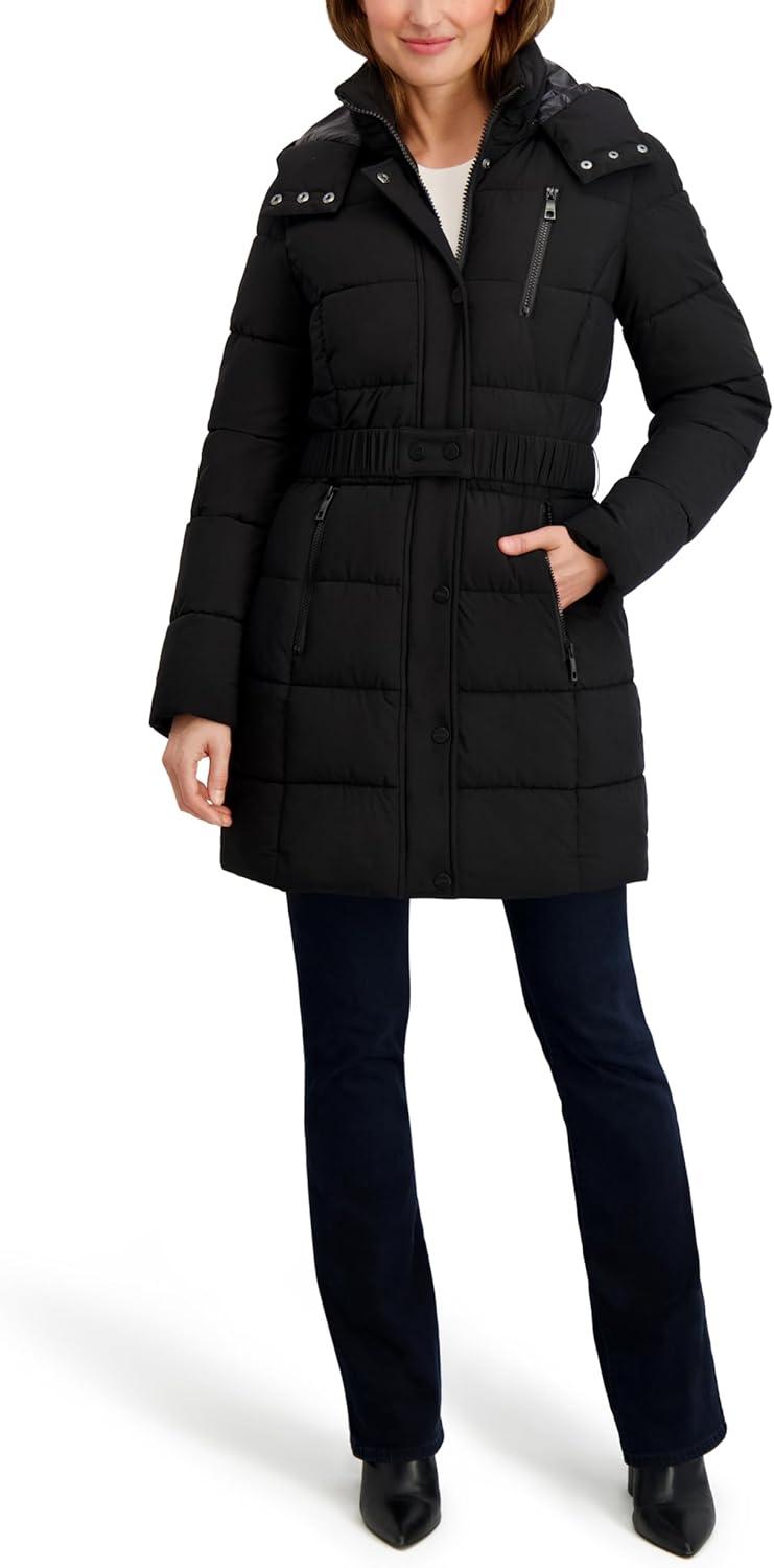 imageNautica Womens Stretch Puffer Jacket  Midweight Winter Coat Detachable Faux Fur Lined Hood Limestone Small