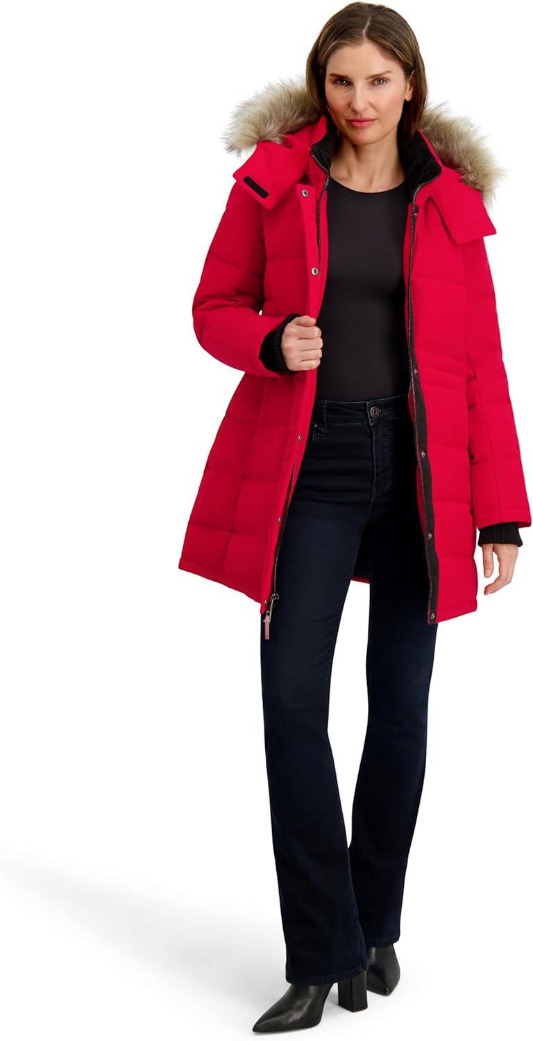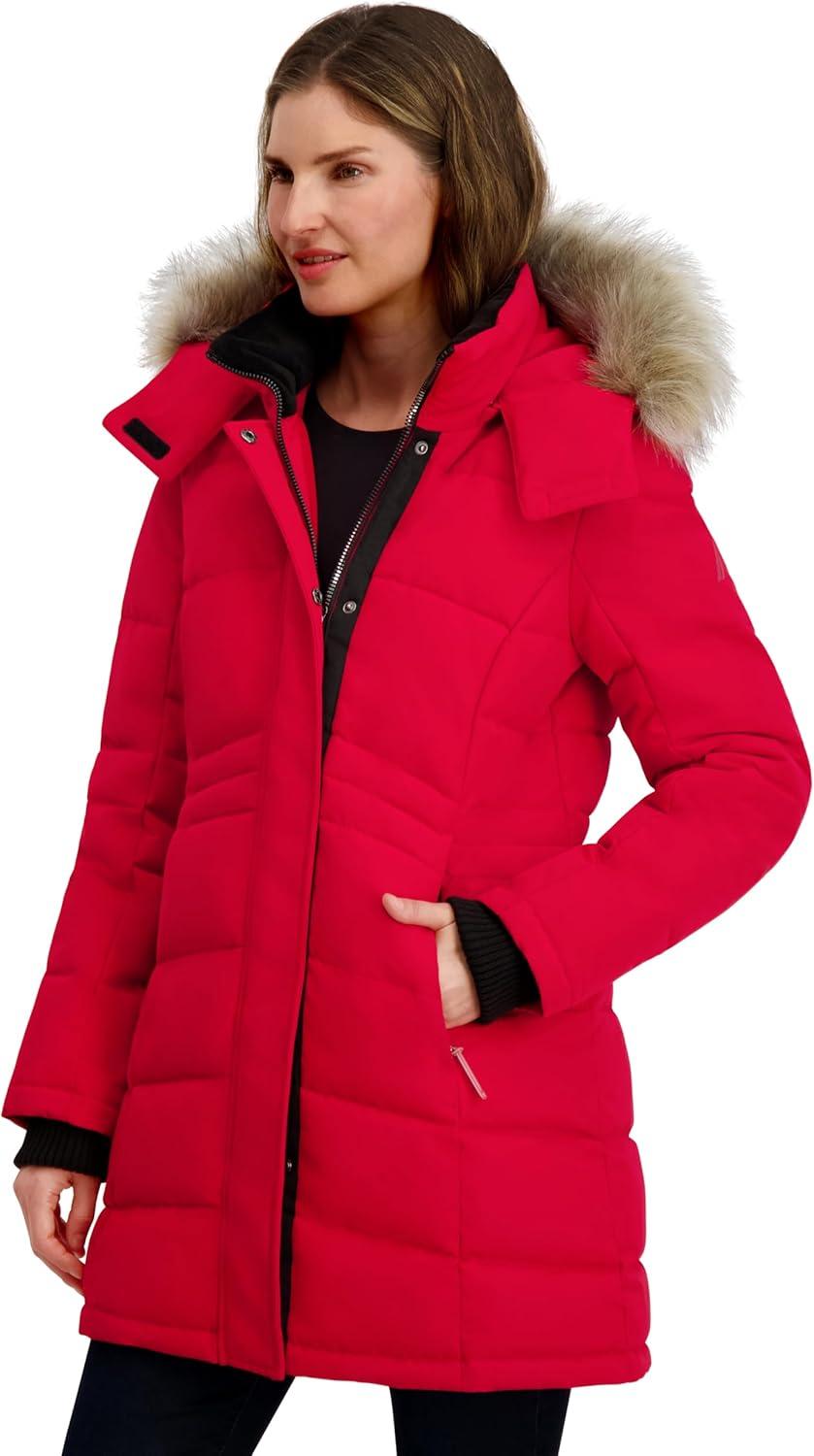 Nautica Women's Mist Heavyweight Winter Coat– Puffer Jacket with Detachable Faux Fur Hood(Nautica Red)