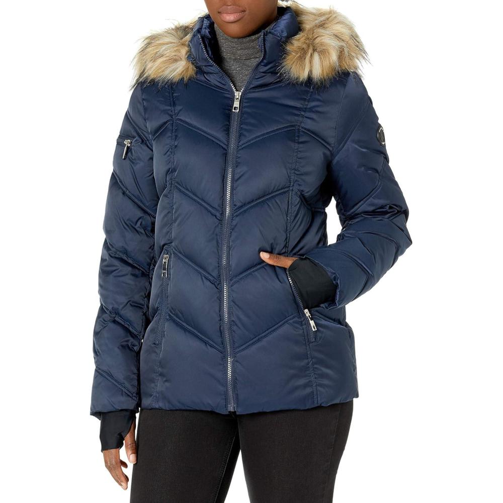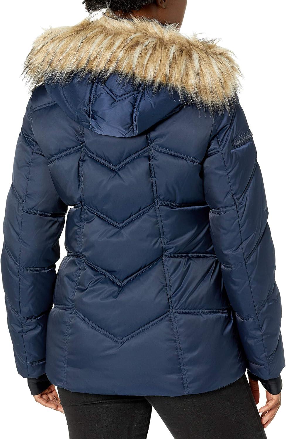 Nautica Women's Mist Heavyweight Winter Coat– Puffer Jacket with Detachable Faux Fur Hood(Navy)