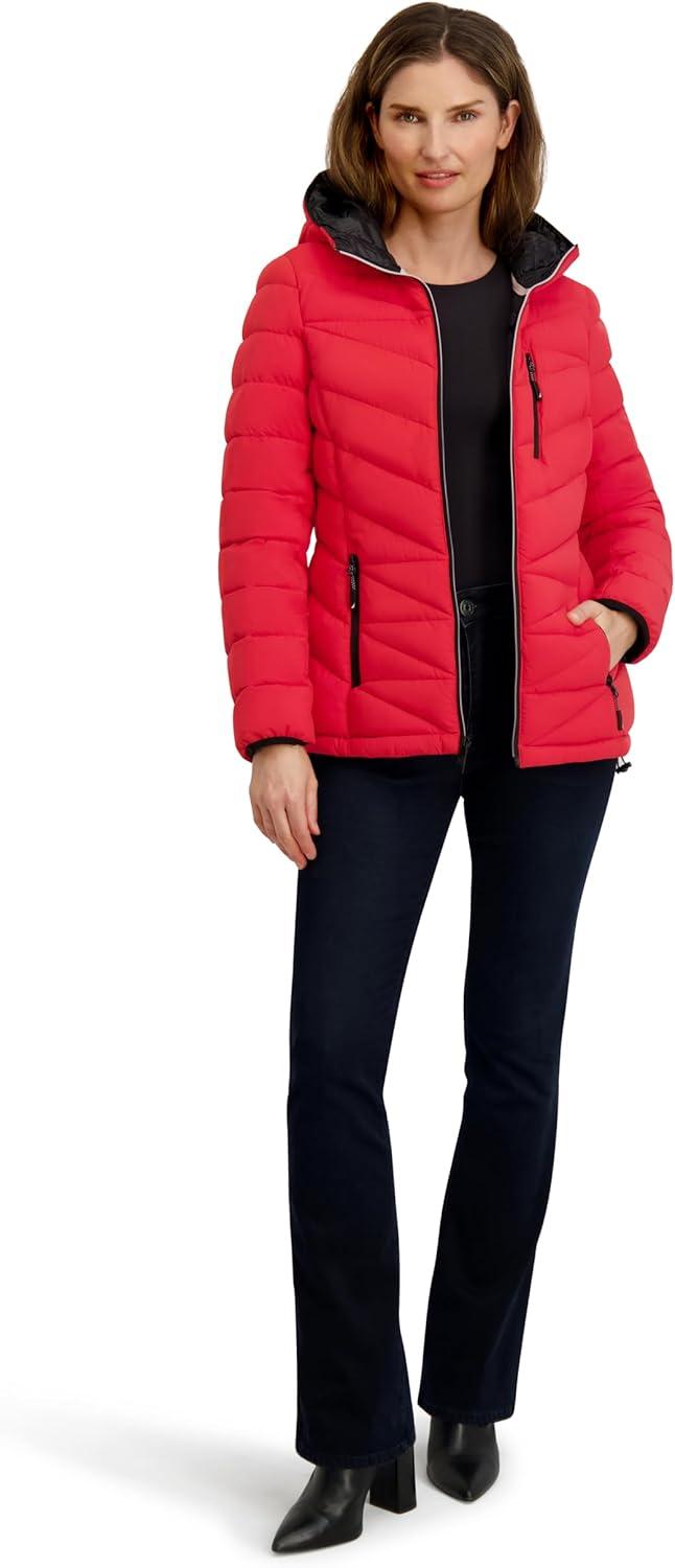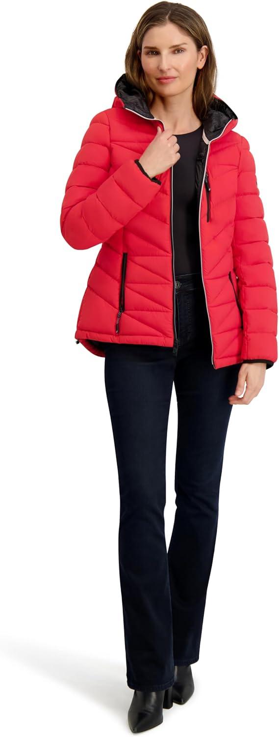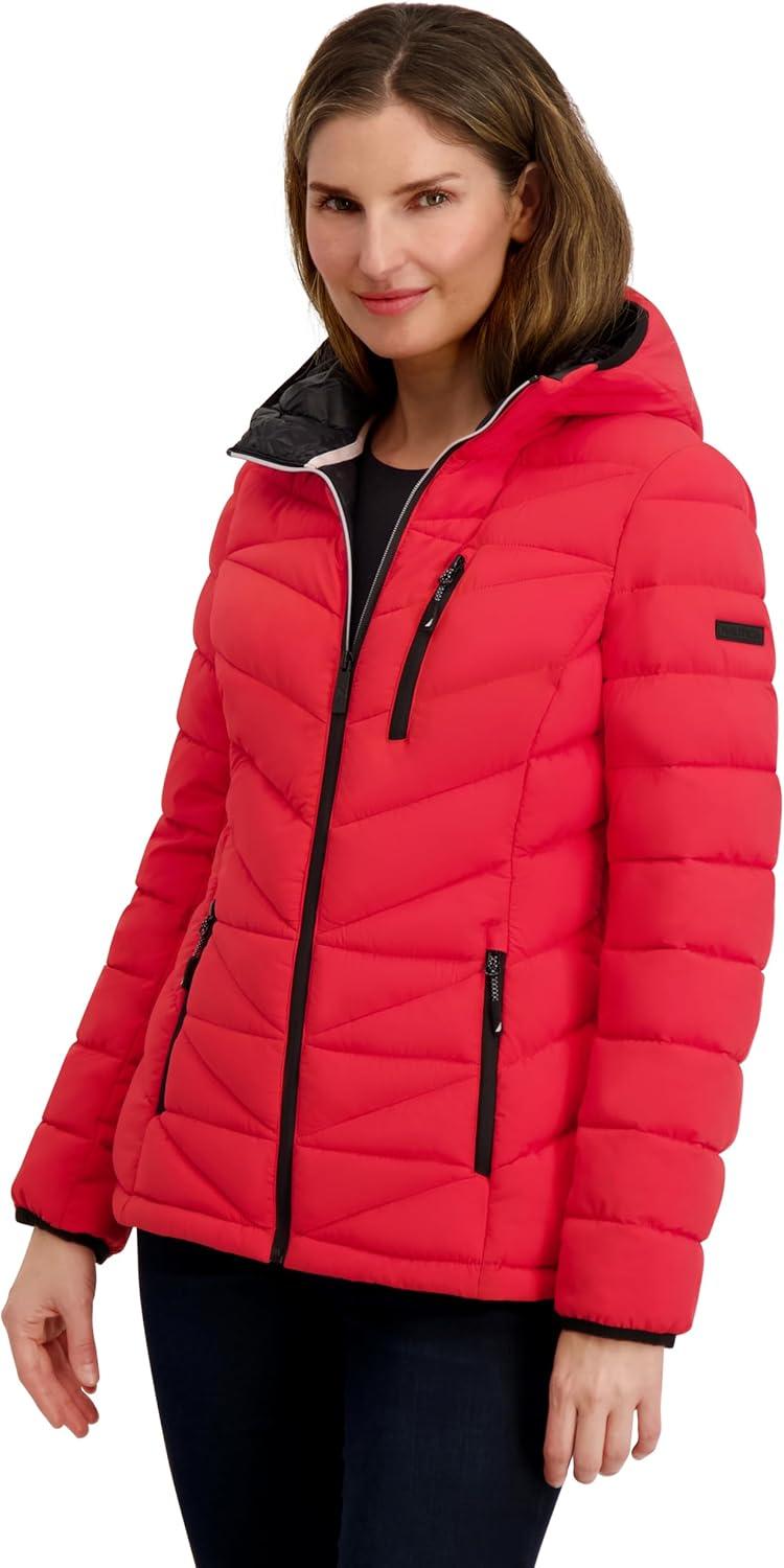 The Nautica Women’s Stretch Puffer Jacket with Adjustable Hem is built to move with you while providing core warmth and functional coverage. Designed for all-season versatility, this 27” midweight coat features a water-resistant, wind-blocking outer shell paired with flexible comfort stretch and lightweight insulation for everyday warmth. A zip front closure, adjustable hem, and attached hood with nylon lining deliver practical protection, while thoughtful pocket placements—including two zippered waist pockets and a zip chest pocket—offer convenient storage. Whether you’re commuting, traveling, or enjoying cool-weather outings, this packable puffer blends performance with a SNOWCHIC aesthetic that fits any lifestyle.