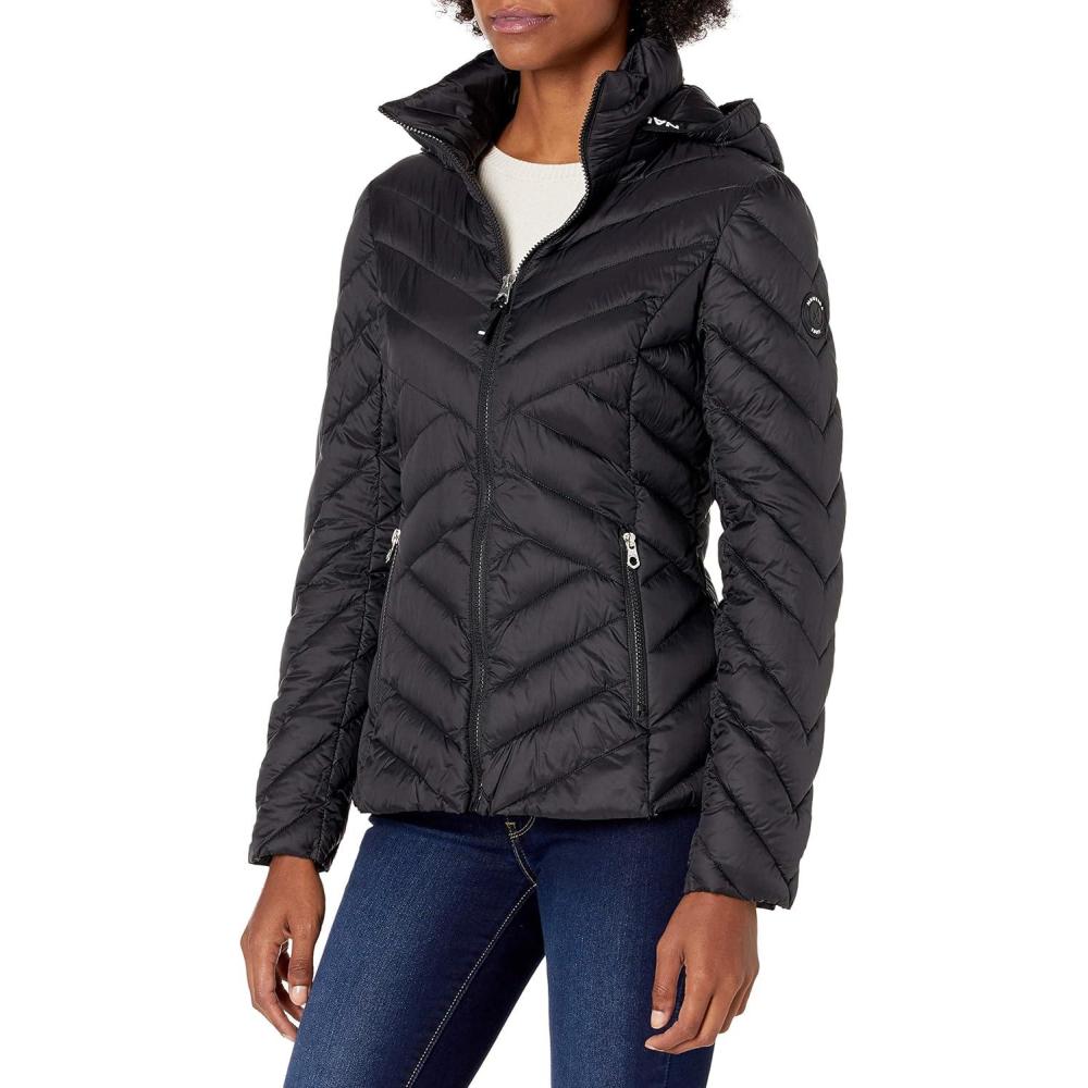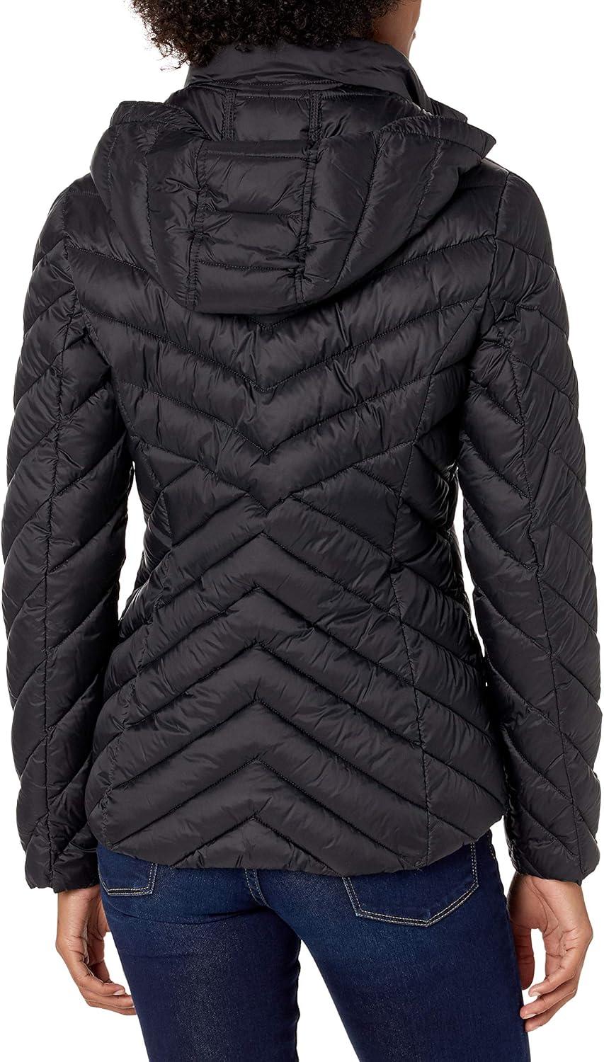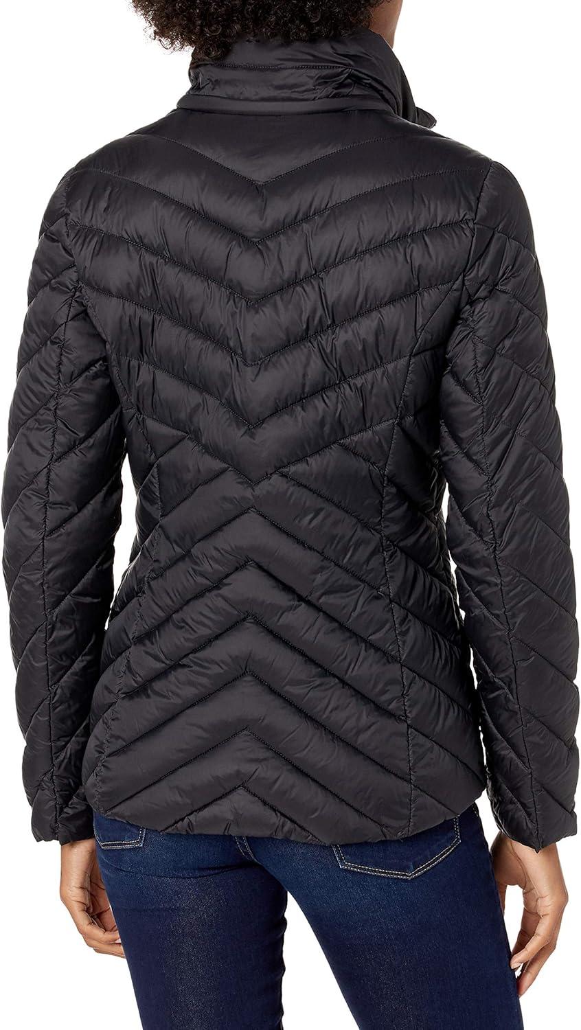 Nautica womens Packable Stretch Puffer Jacket – Midweight Water-resistant Coat Adjustable Hem(Onyx)