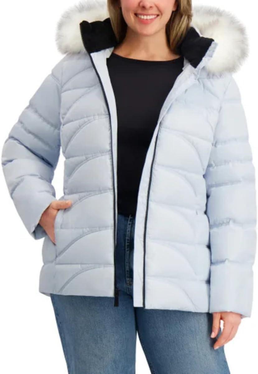 Nautica Women’s Short Puffer Coat with Faur Fur Trim Hood(Onyx)