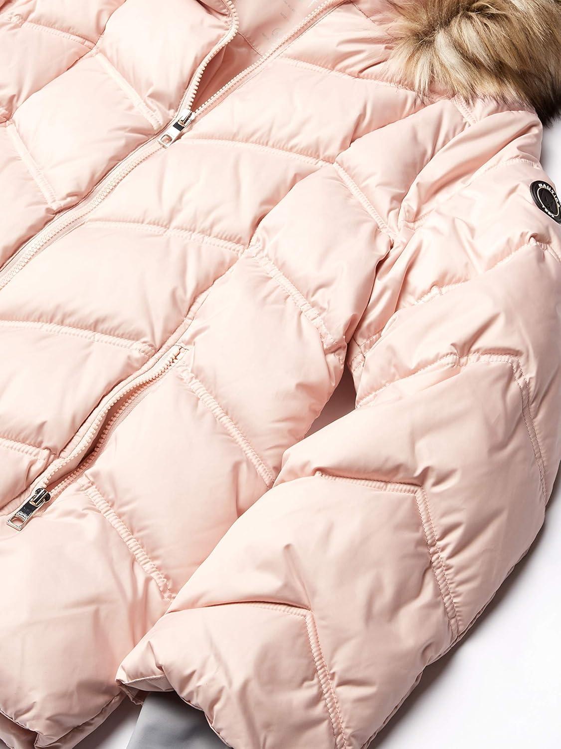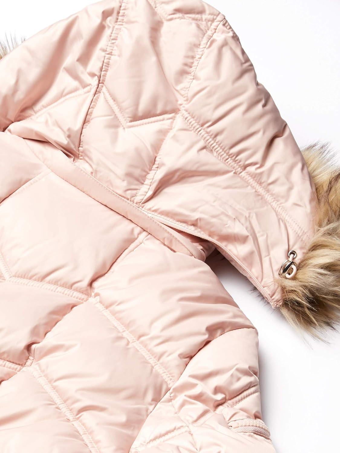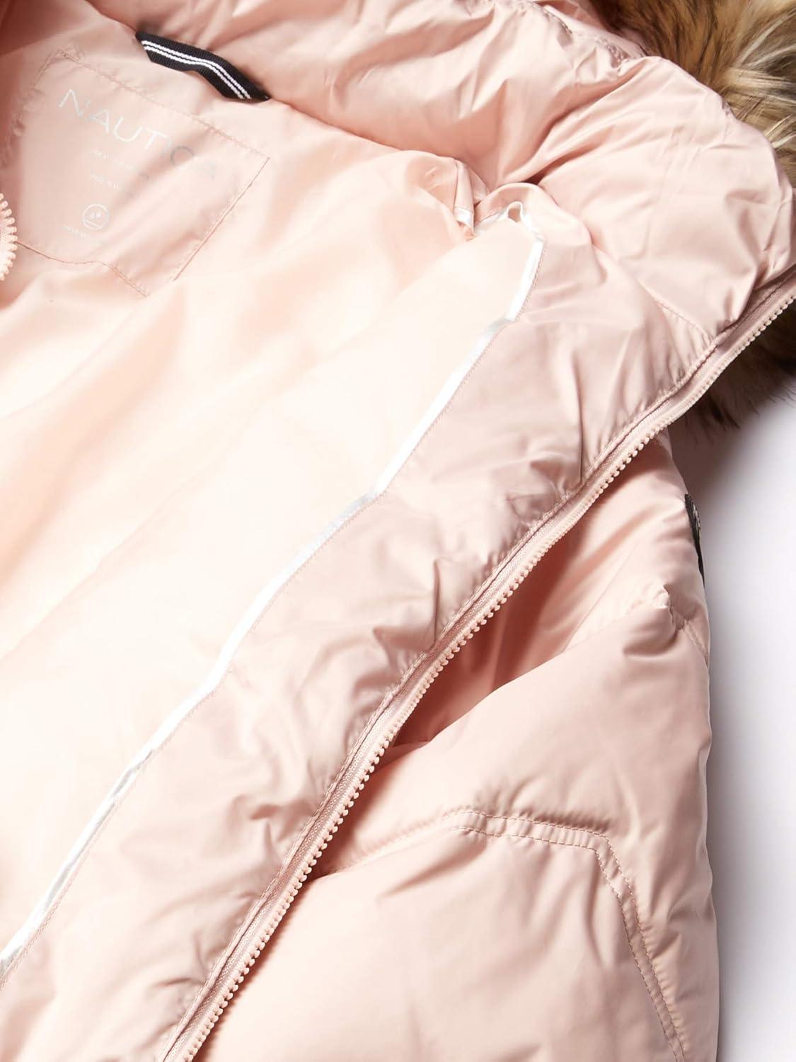 Nautica Women’s Short Puffer Coat with Faux Fur Trim Hood(Dusty Pink)