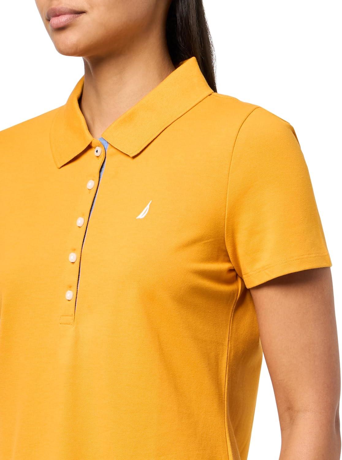 This Nautica Jeans Women's Polo is a solid short sleeve polo with a button placket and collar