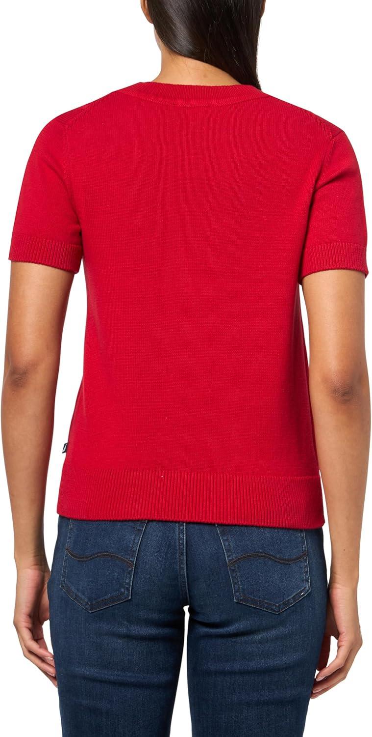 Nautica Womens Short Sleeve Crew Neck Cable Solid Sweater(Haute Red)