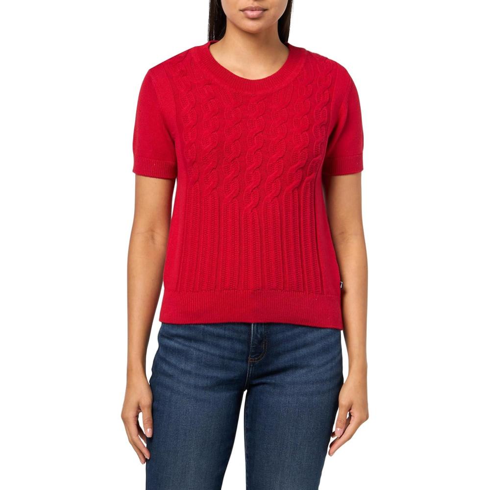 imageNautica Womens Short Sleeve Crew Neck Cable Solid SweaterHaute Red