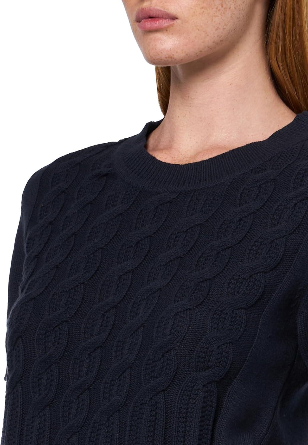 Nautica Womens Short Sleeve Crew Neck Cable Solid Sweater(Night Sky)