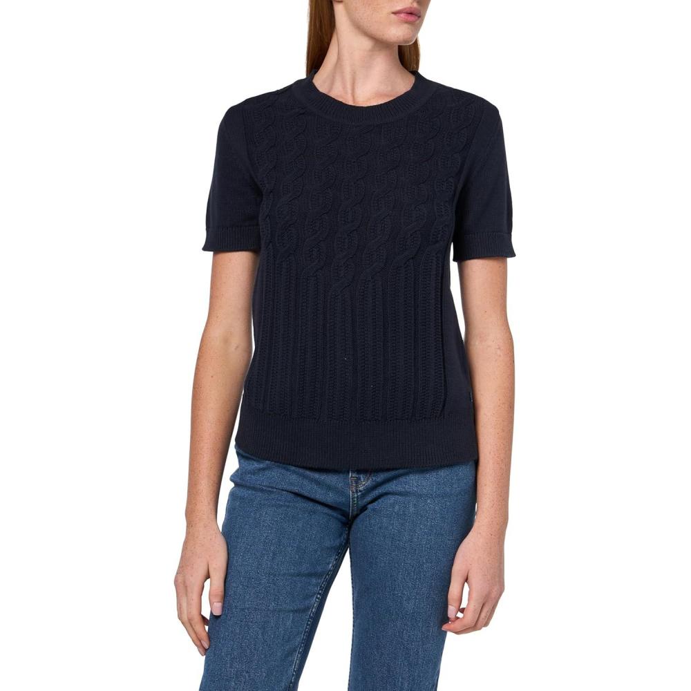 imageNautica Womens Short Sleeve Crew Neck Cable Solid SweaterNight Sky