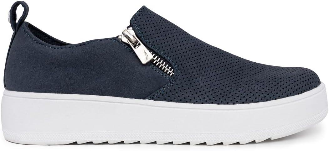 Nautica Women's Slip-On Fashion Sneakers with Side Zipper – Comfortable Low-Top Walking Shoes for Casual Everyday Wear(Navy)