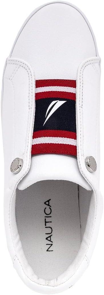 Nautica Women’s Slip-On Sneakers – Casual Low-Top Walking Shoes – Comfortable No-Lace Fashion Tennis Style(Nitara-white)