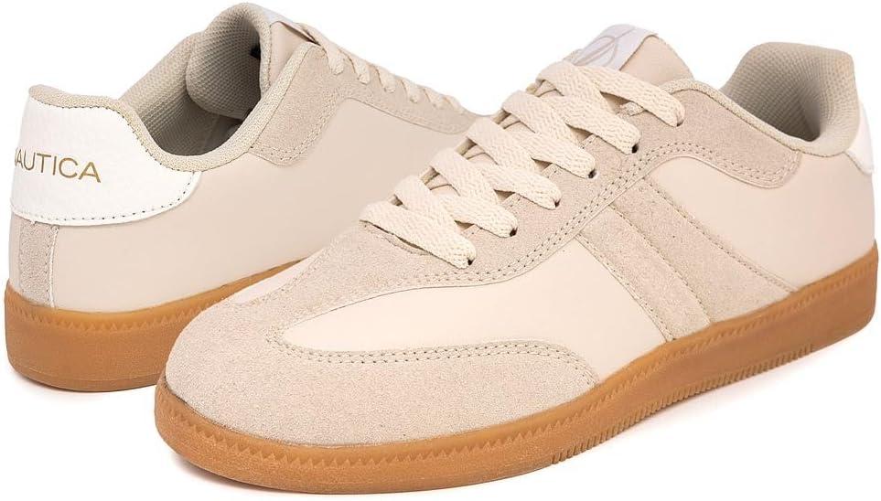 Nautica Women’s Athletic Sneakers – Lace-Up Low Top Tennis Shoes with Vegan Leather and Suede Upper, Lightweight Gym and Training Footwear Step into effortless style and performance with these Nautica women’s athletic sneakers. Designed with a clean low-top profile, they bring a modern take on classic tennis shoes while offering all-day comfort. The mix of vegan leather and suede creates a sleek, durable upper that pairs just as easily with workout gear as it does with casual outfits. Built for versatility, these sneakers feature a lightweight construction that makes them ideal for training, walking, or simply staying on your feet throughout the day. The lace-up design ensures a secure fit, while the cushioned insole provides the support you need during workouts or long commutes. A sturdy gum sole adds traction and durability, giving you confidence on gym floors, sidewalks, or city streets. With a balance of sporty function and timeless design, Nautica delivers sneakers that work for more than just athletics. Whether you’re running errands, heading to the gym, or styling them with jeans and a tee, these shoes offer the right blend of comfort and fashion. They’re a wardrobe staple that keeps you moving in style.
