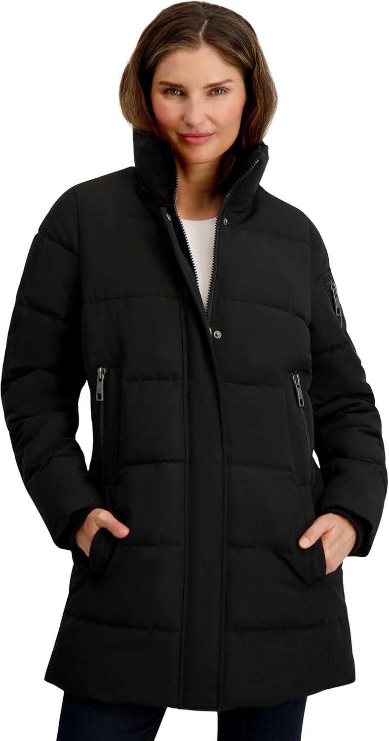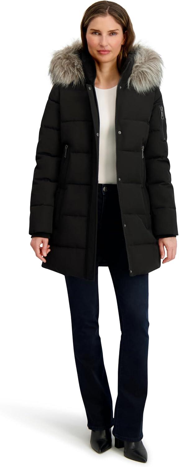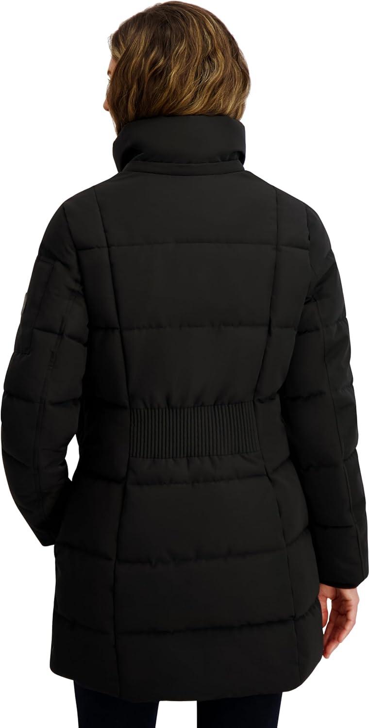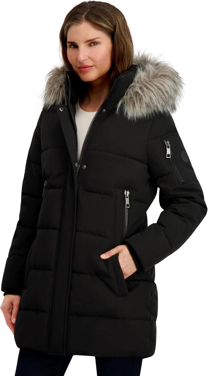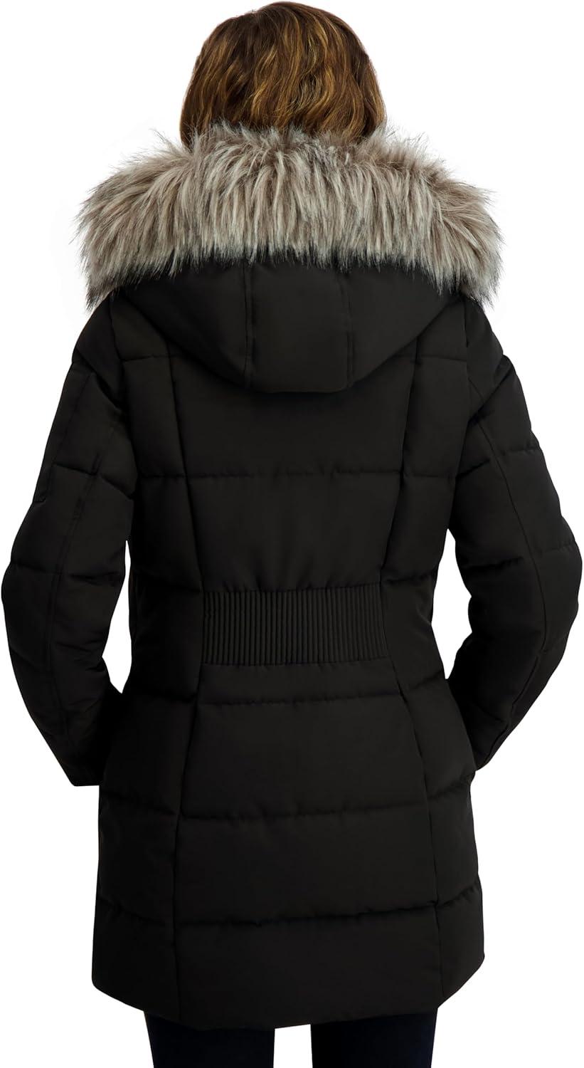 Brave the elements in style with the Nautica Women’s Soft Mist Heavyweight Puffer Coat. Designed for cold winter days, this 32-inch jacket offers a cozy yet flattering fit with soft stretch fabric that moves with you. A water-resistant coating and wind-blocking fabric ensure protection against the elements, while the insulated interior and neoprene storm cuffs retain warmth. The full zip front is reinforced with a snap-close placket for added defense against harsh winds. A detachable faux fur-trimmed hood adds versatility and cozy appeal. Practical details like an upper arm zip pocket and elongated zippered hand pockets provide both utility and warmth. Whether you’re commuting, traveling, or heading out for winter fun, this jacket blends style, comfort, and weather-ready performance.