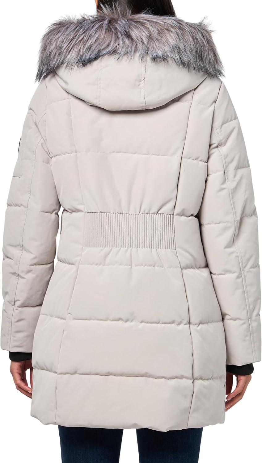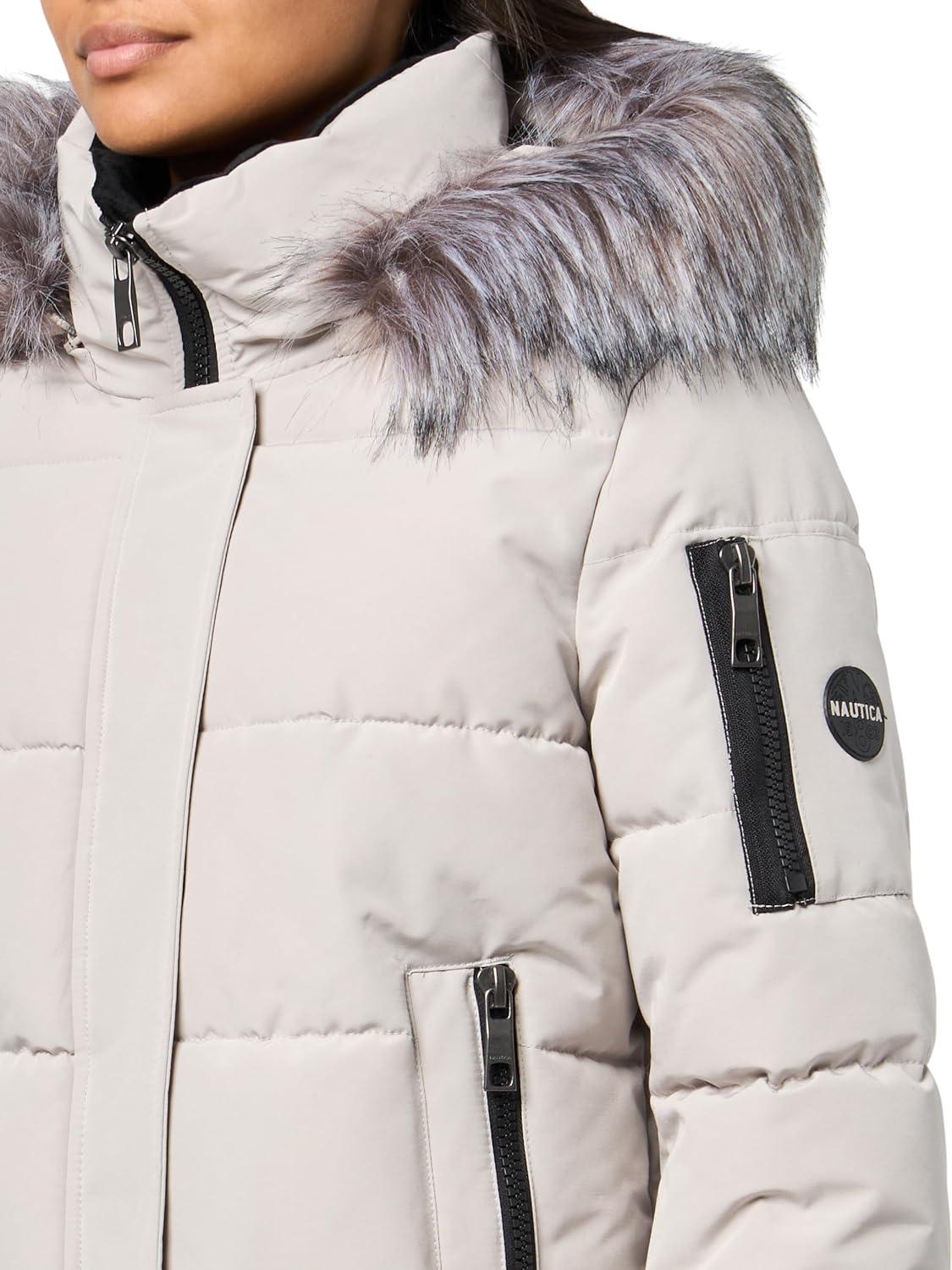 Nautica womens Soft Mist Heavyweight Puffer Coat– Winter Jacket With Detachable Faux Fur Hood(Limestone)