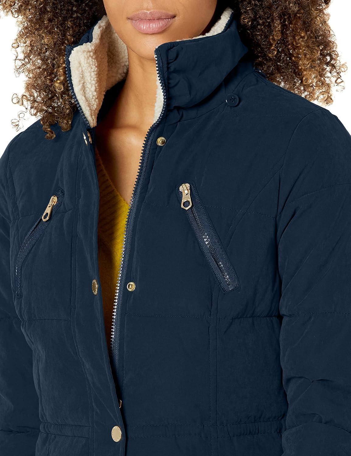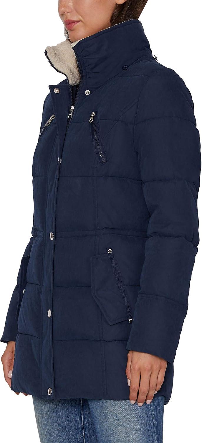 Nautica womens Soft Mist Heavyweight Puffer Coat– Winter Jacket With Detachable Faux Fur Hood(Navy Seas)