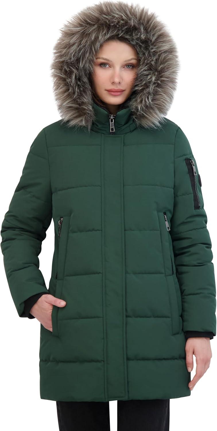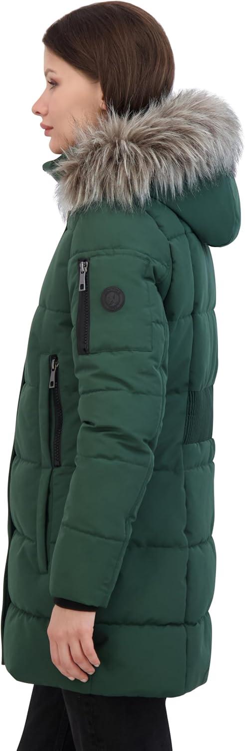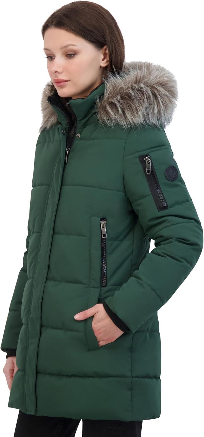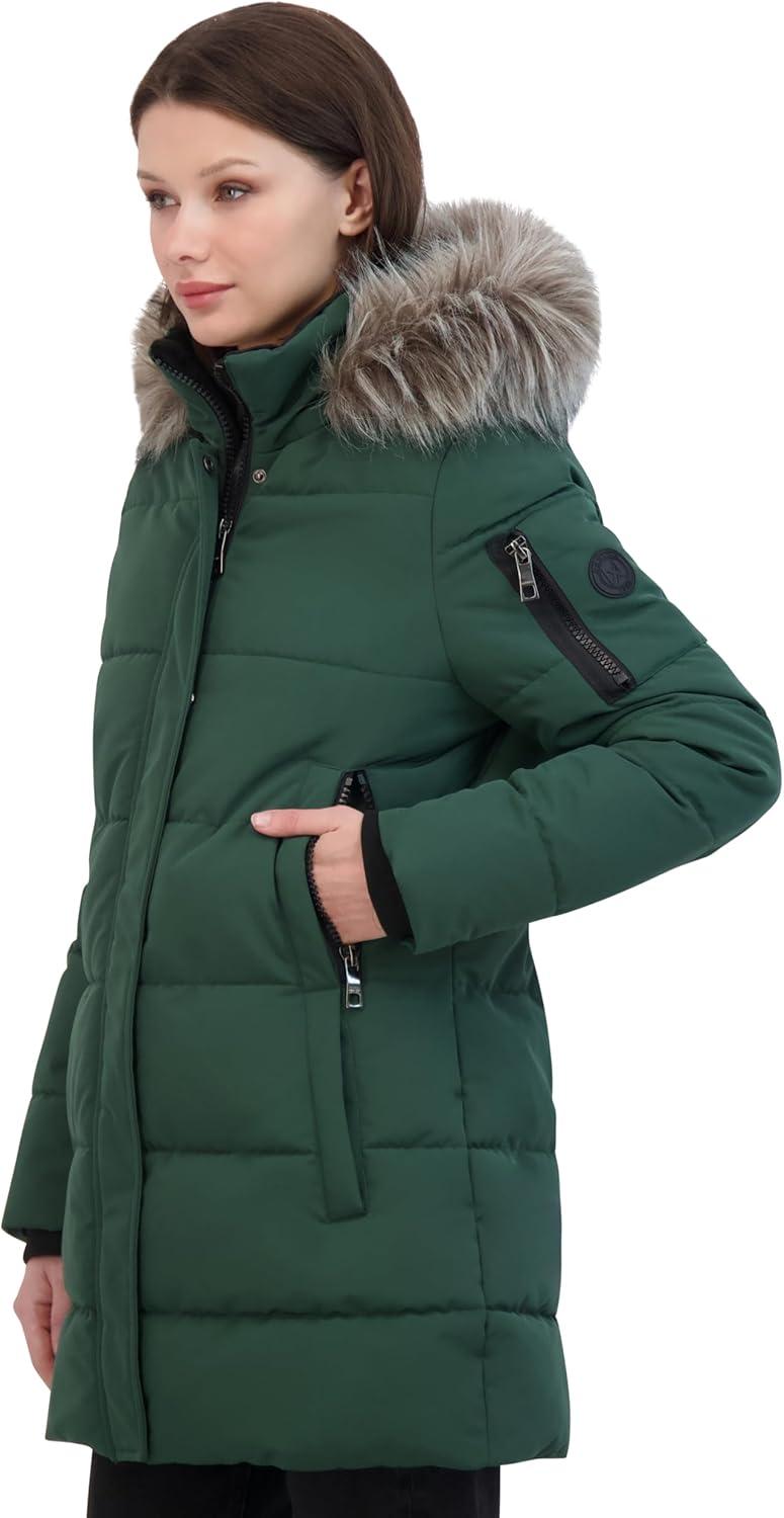 Nautica womens Soft Mist Heavyweight Puffer Coat– Winter Jacket With Detachable Faux Fur Hood(Verde)