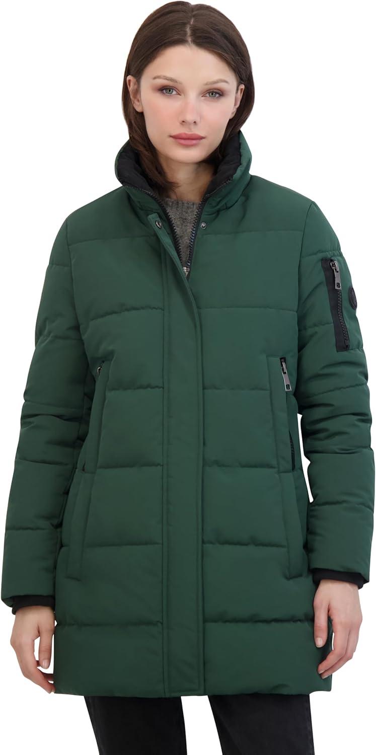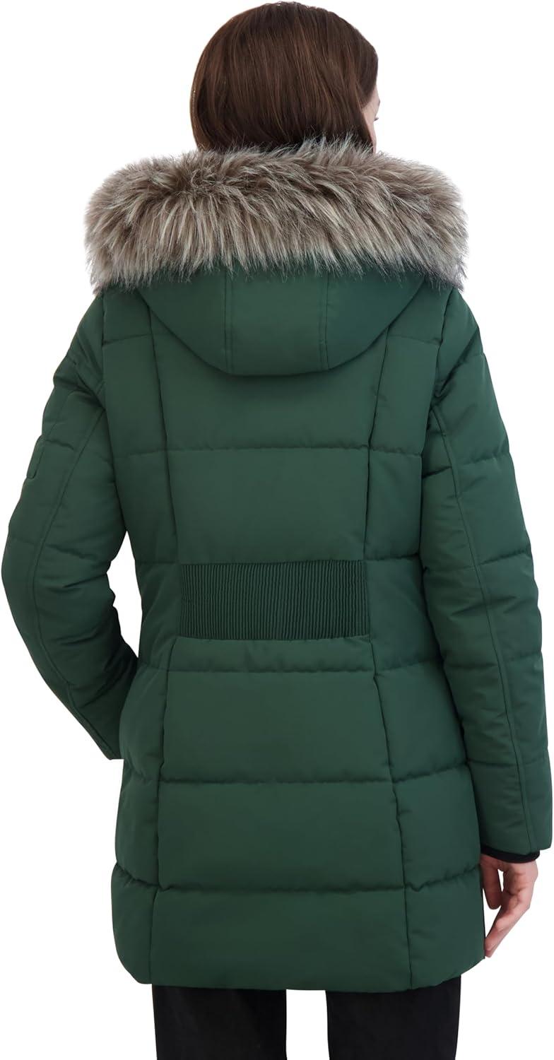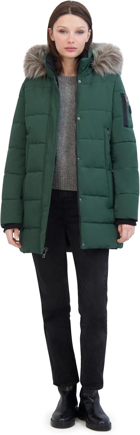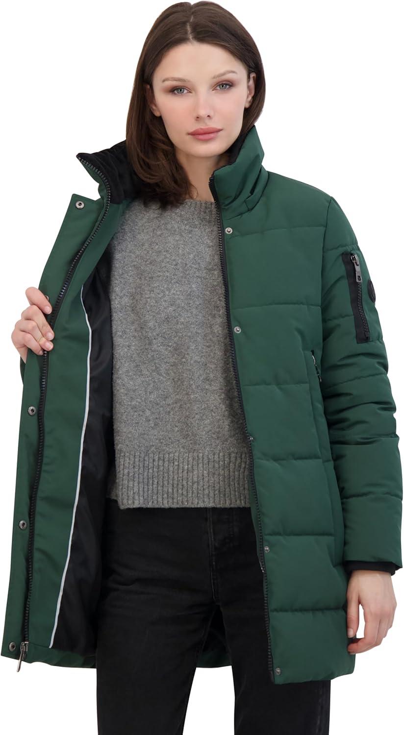 Nautica womens Soft Mist Heavyweight Puffer Coat– Winter Jacket With Detachable Faux Fur Hood(Verde)