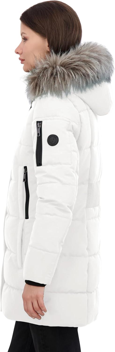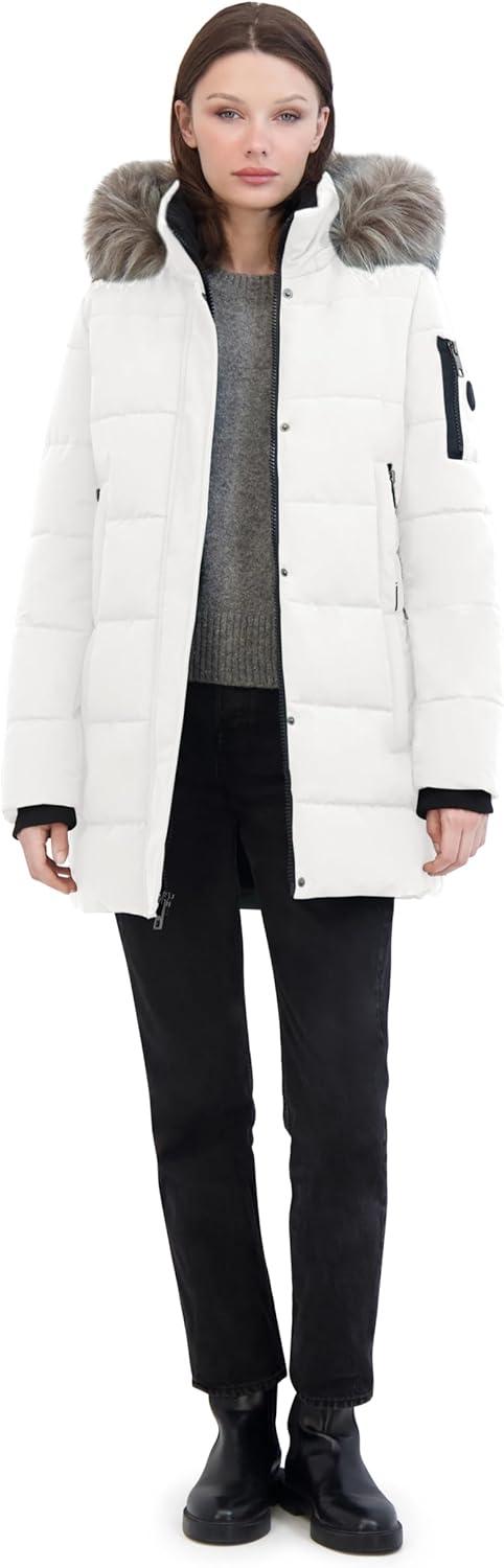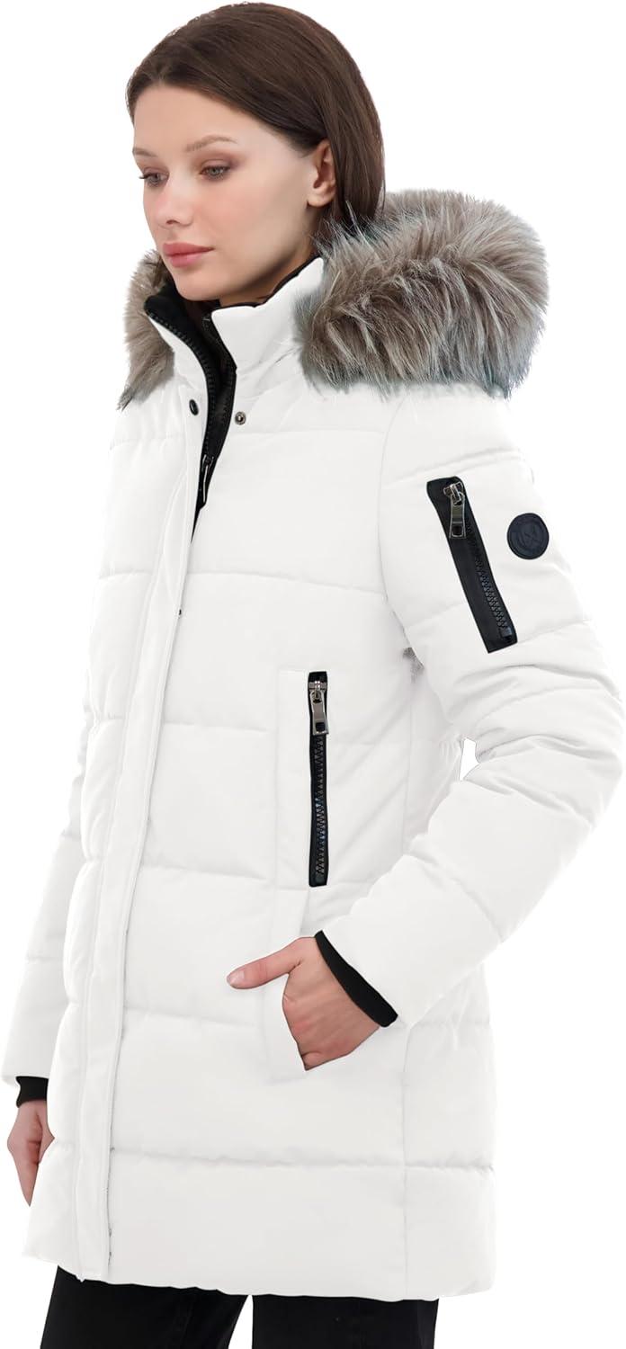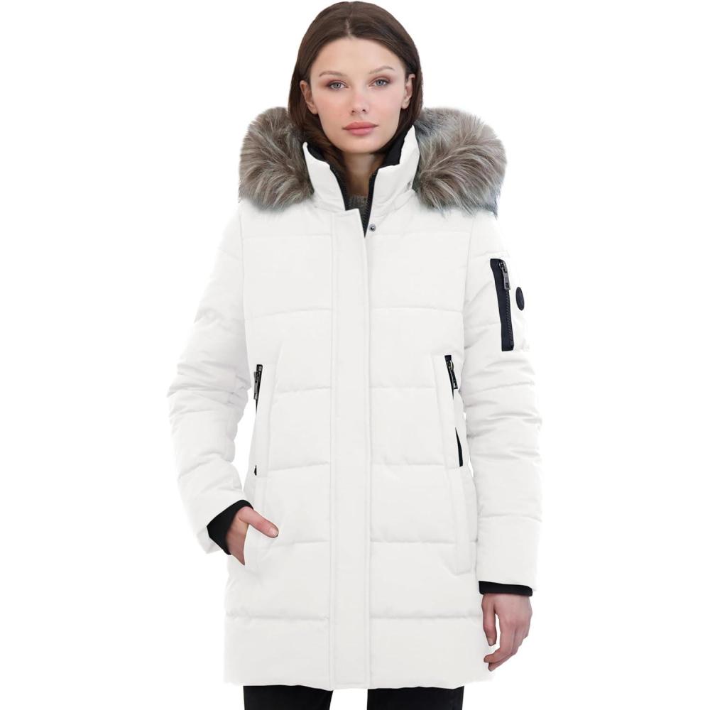 Nautica womens Soft Mist Heavyweight Puffer Coat– Winter Jacket With Detachable Faux Fur Hood(Winter White)