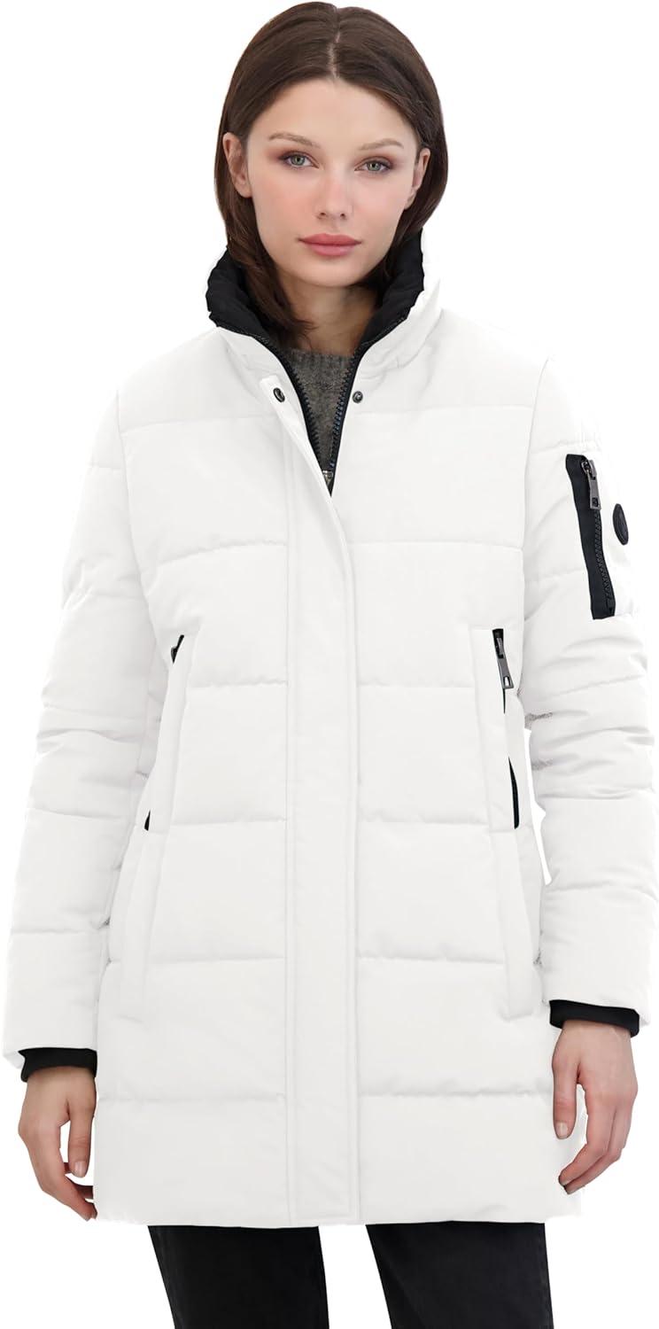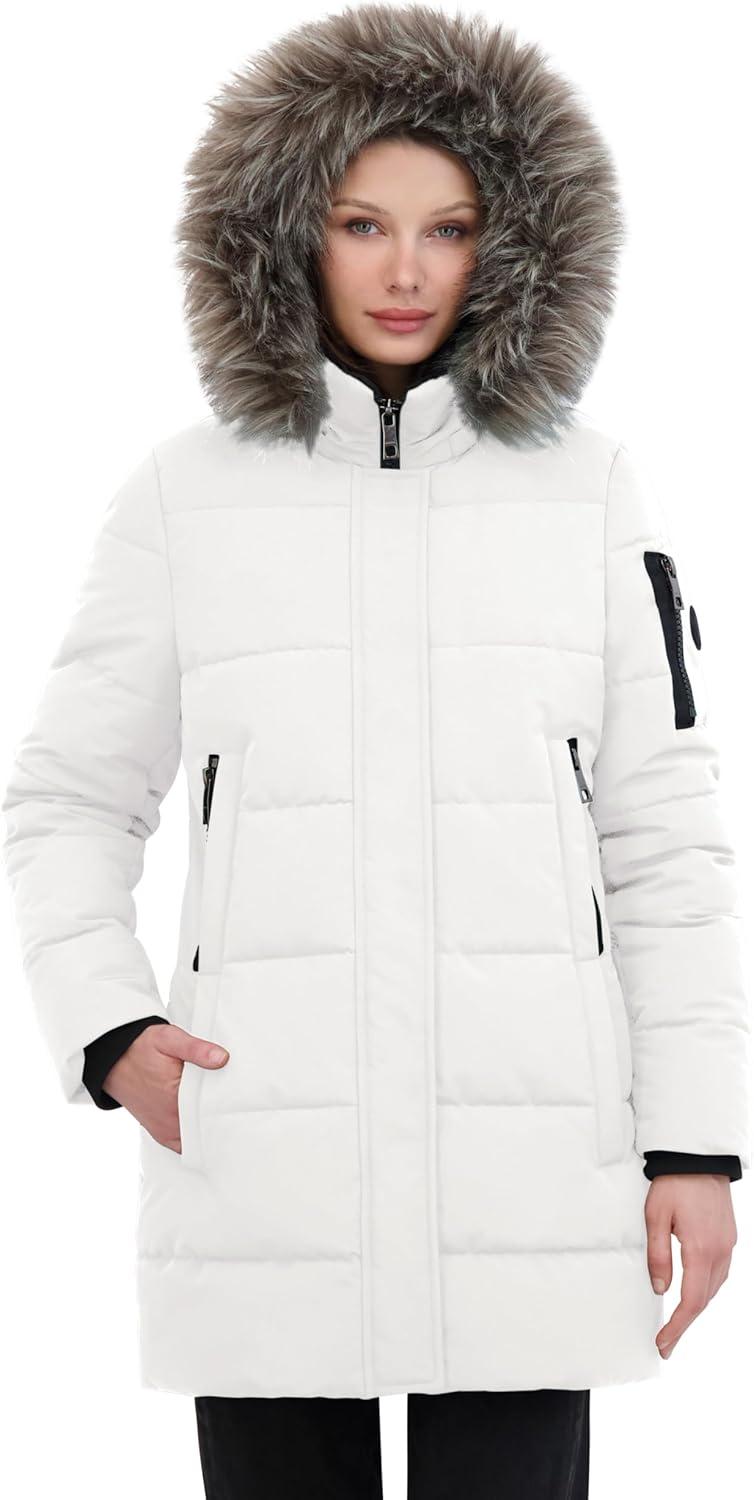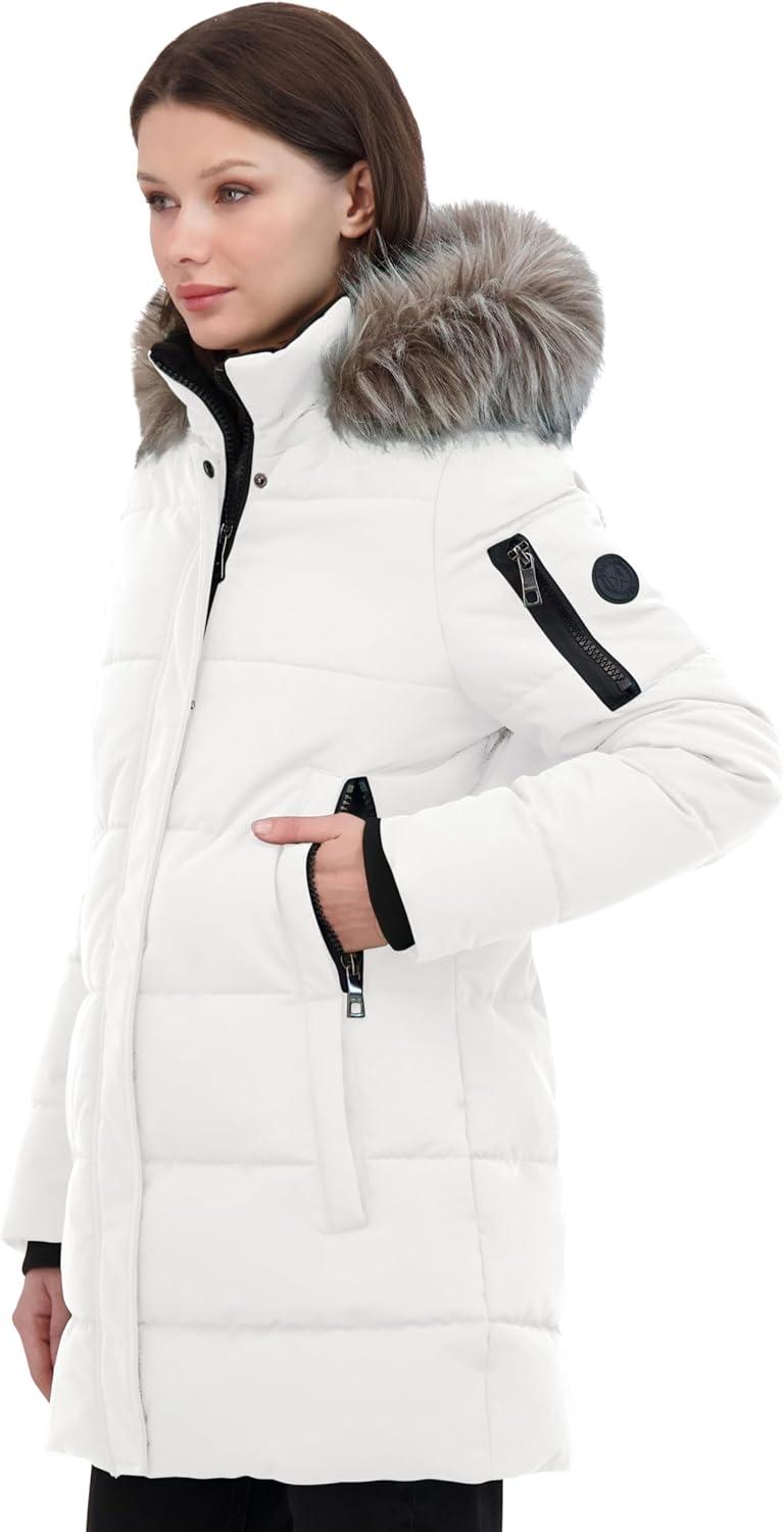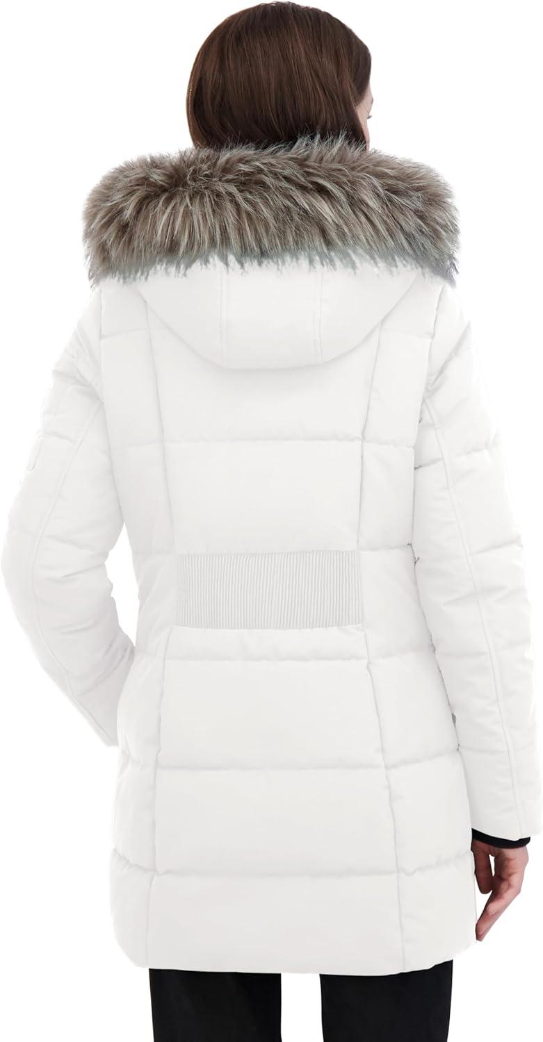Nautica womens Soft Mist Heavyweight Puffer Coat– Winter Jacket With Detachable Faux Fur Hood(Winter White)