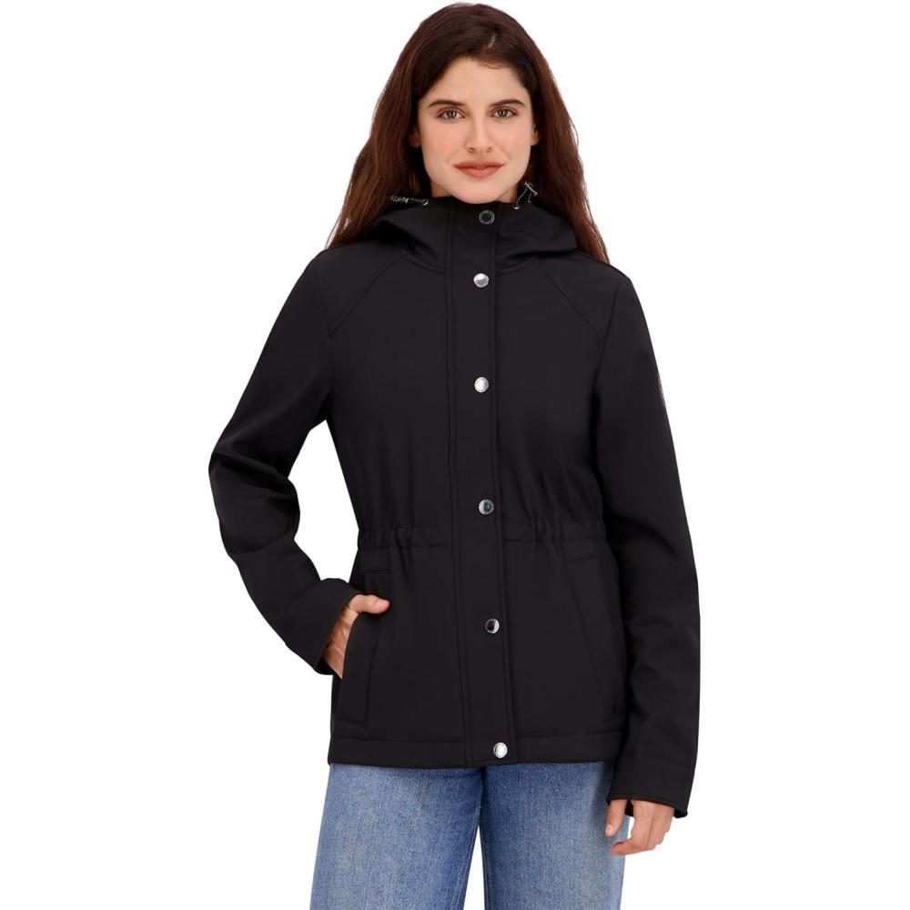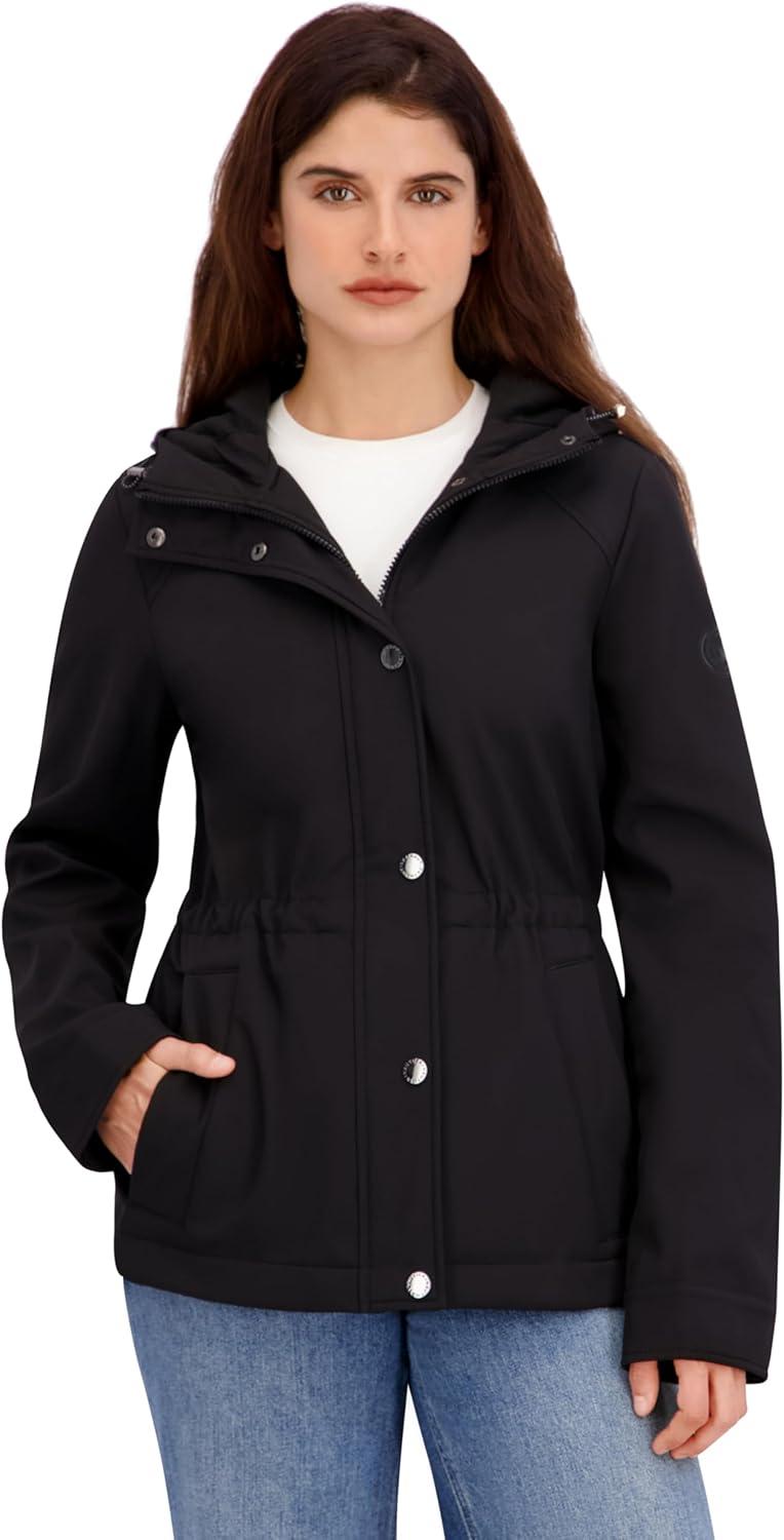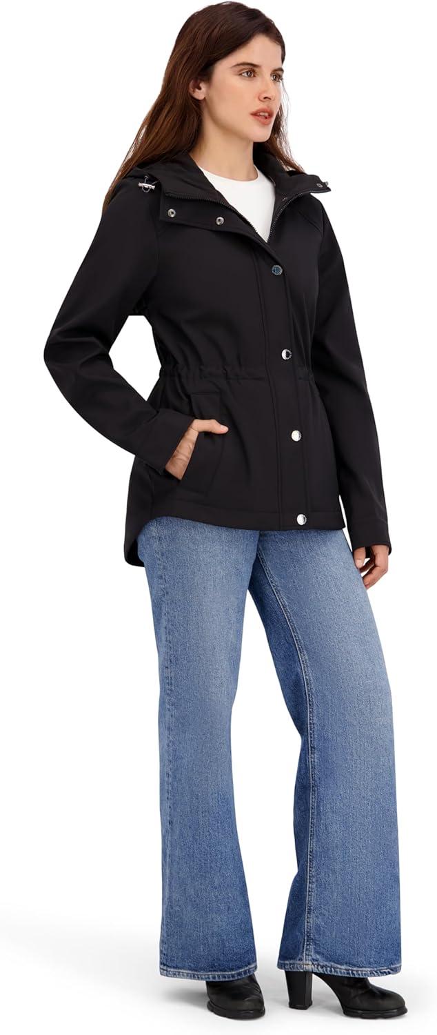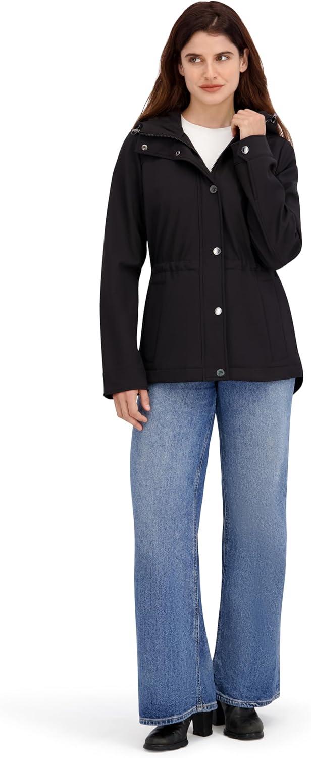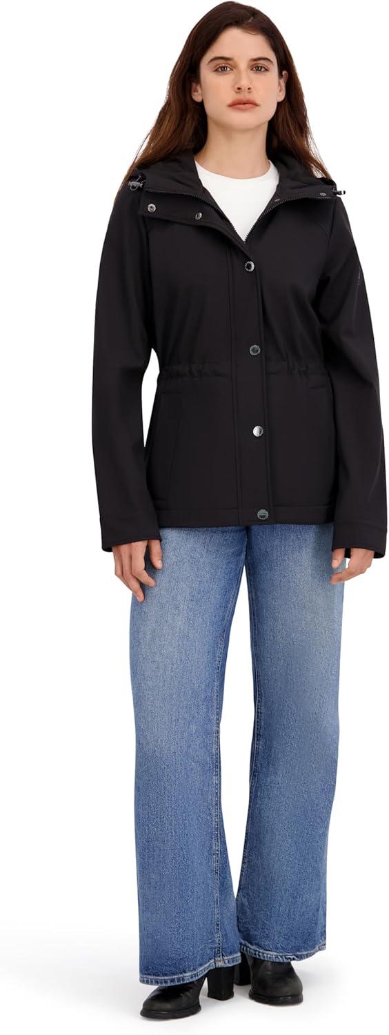 Nautica womens Softshell Jacket– Water-resistant, Wind-resistant Transitional Coat, Adjustable Waist(Black)