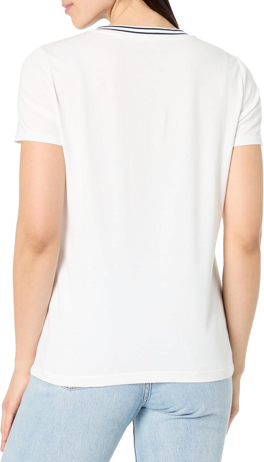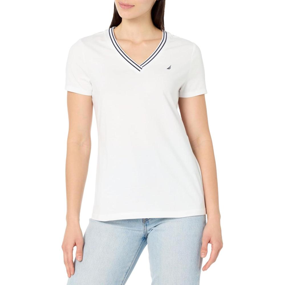 Nautica Womens Solid V-Neck Short Sleeve T-Shirt(Bright White Multi)