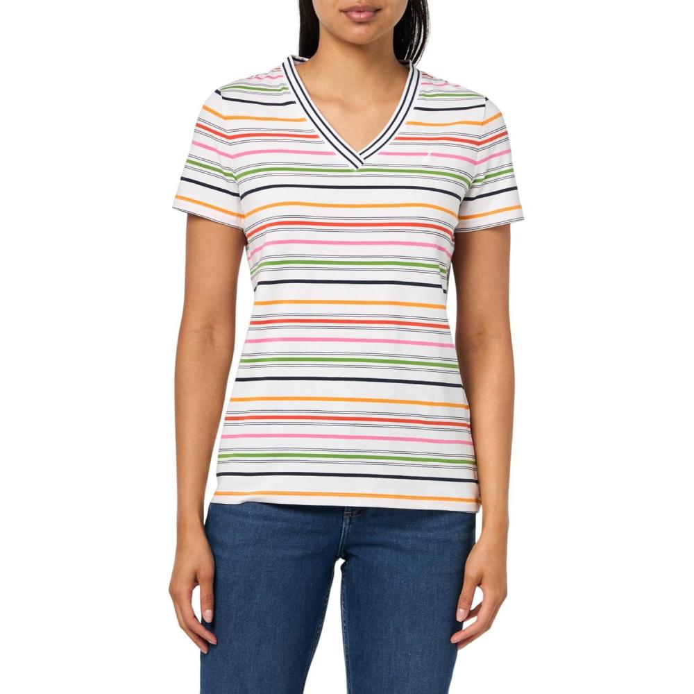 Nautica Womens Solid V-Neck Short Sleeve T-Shirt(Bright White Multi)