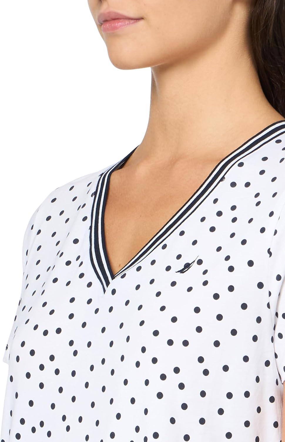 Nautica Womens Solid V-Neck Short Sleeve T-Shirt(Bright White/Sky Captain)