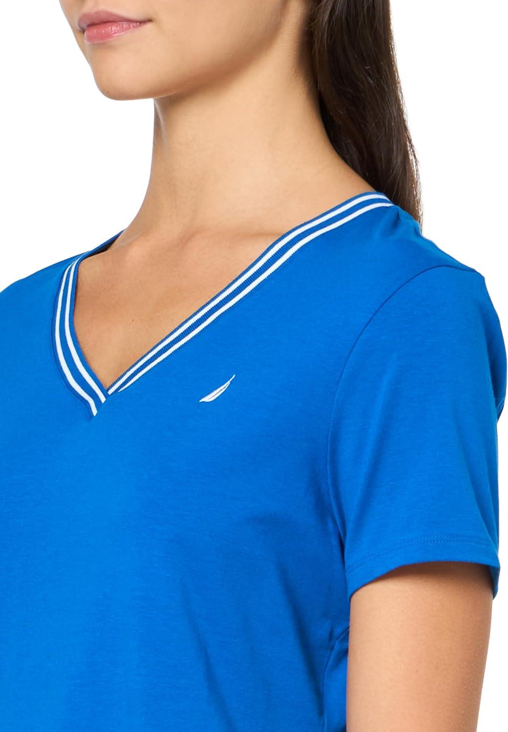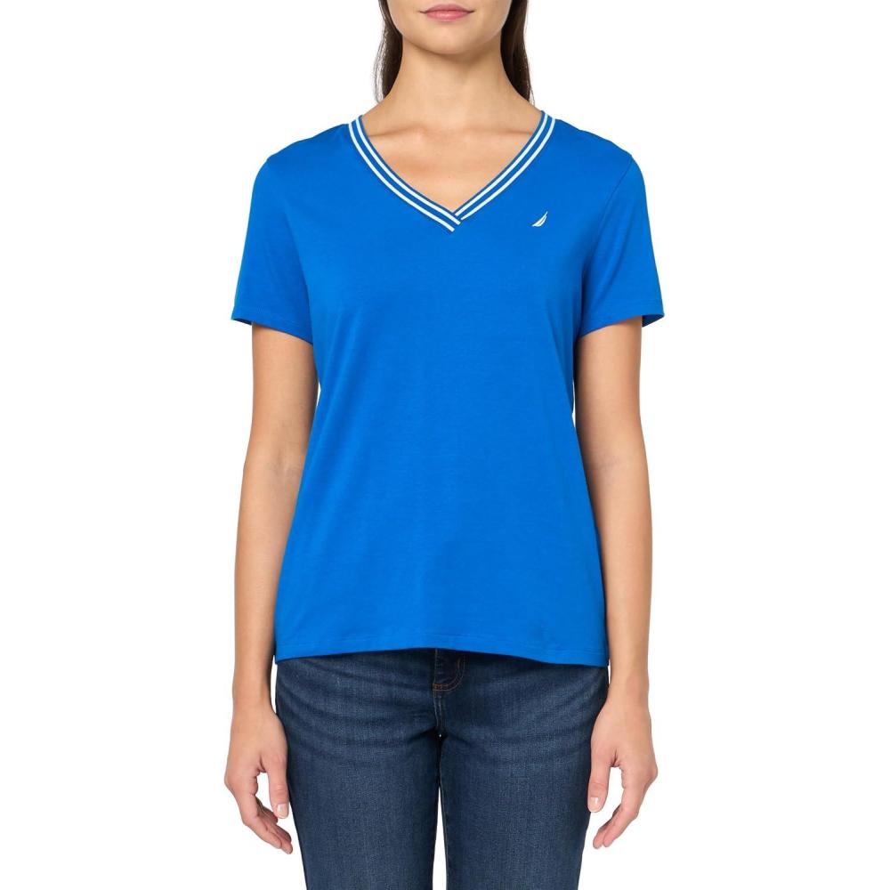 Nautica Womens Solid V-Neck Short Sleeve T-Shirt(Cerulean/White)
