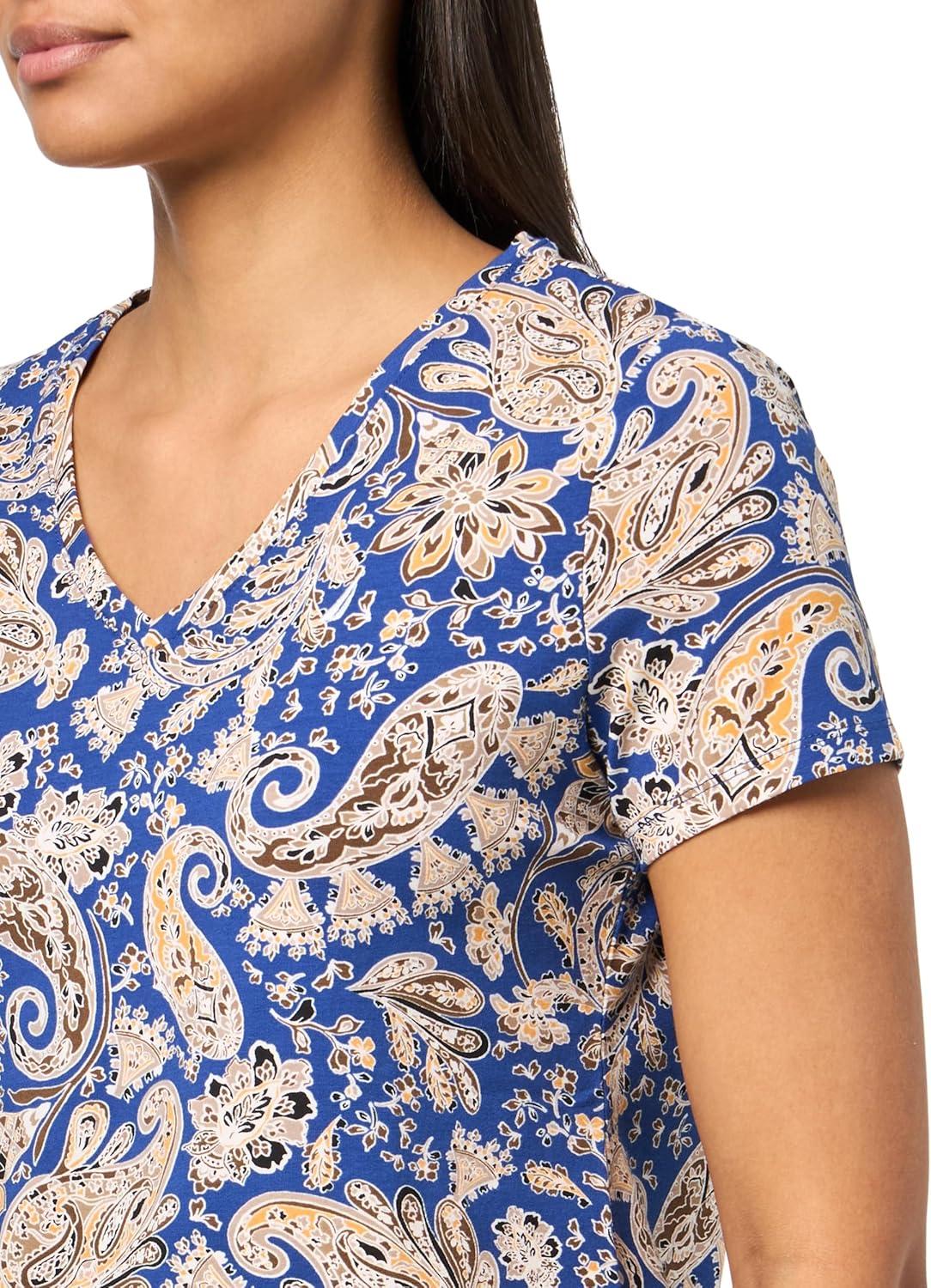 This Nautica Women's Jeans Short Sleeve Printed Cotton V-Neck T-Shirt is a Short Sleeve Paisley Printed Cotton V-Neck T-Shirt