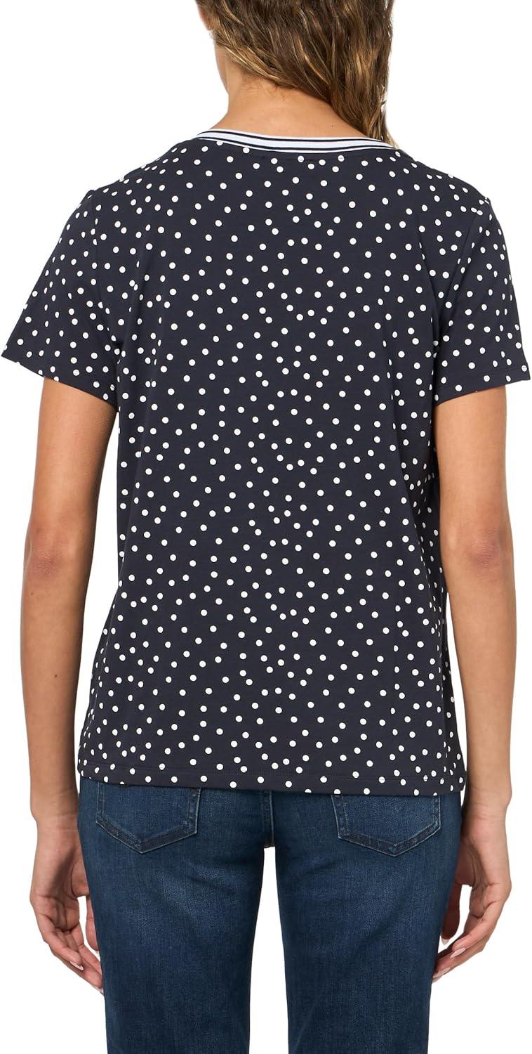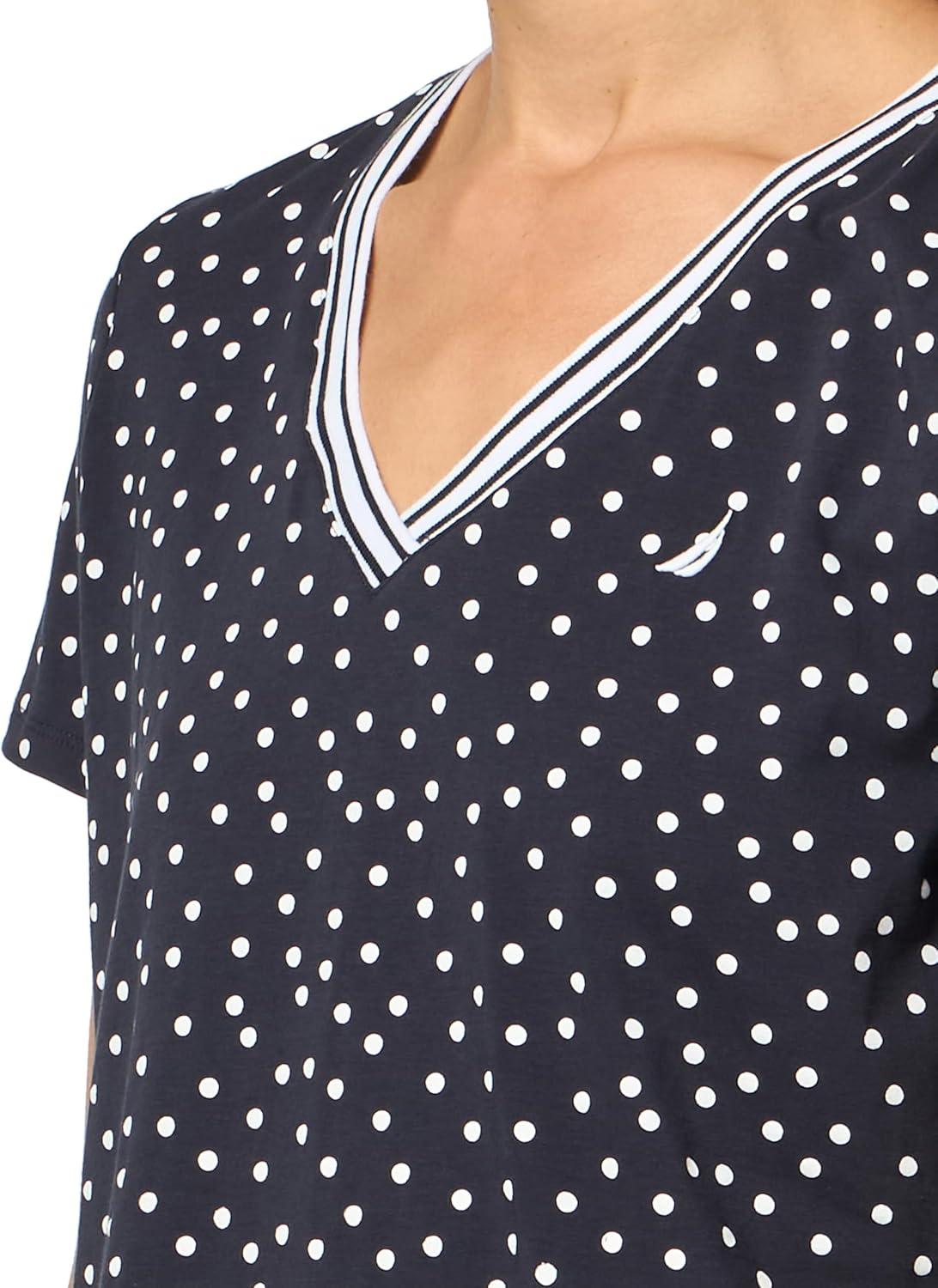 Nautica Womens Solid V-Neck Short Sleeve T-Shirt(Night Sky/White Bright)