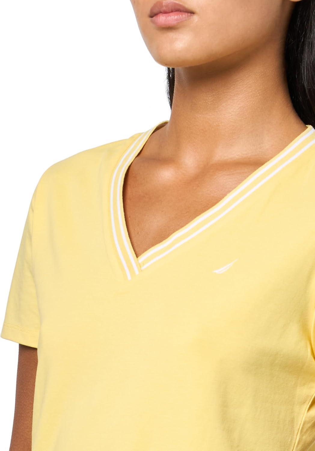 Nautica Womens Solid V-Neck Short Sleeve T-Shirt(Snapdragon)