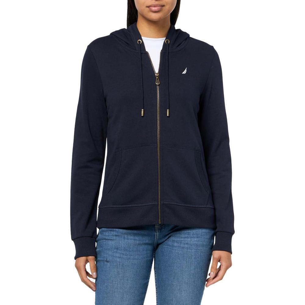 This Nautica Women's Jeans Solid Zipper Hoodie Sweatshirt is a Long Sleeve Solid Zipup Hoodie Sweatshirt