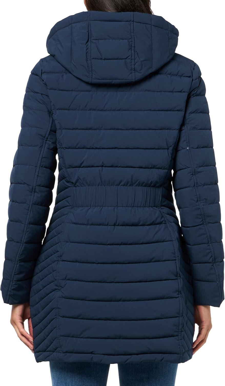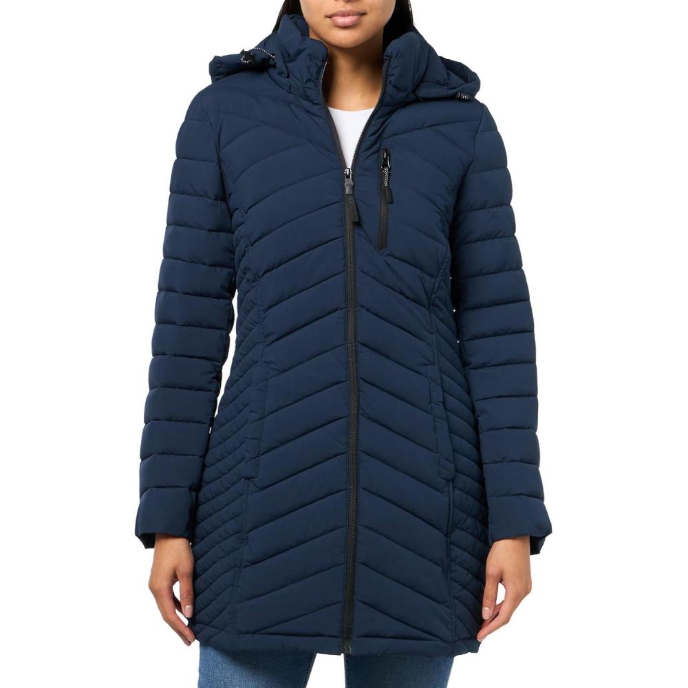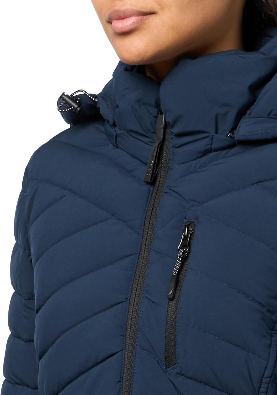 Nautica Women's Stretch Puffer Jacket – Midweight Quilted Coat Detachable Hood(Deep Navy)