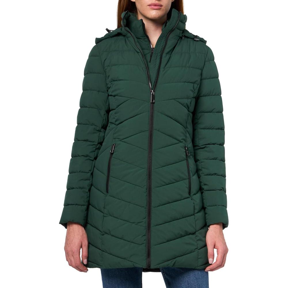 The Nautica Women’s Stretch Puffer Jacket with Interior Bib and Nylon Lining is designed for practical warmth with a polished winter aesthetic. This 33” midweight coat features a 3/4-length stretch design with water- and wind-resistant protection, offering breathable insulation and ease of movement. The zip-front closure is layered over a built-in nylon bib that provides added core warmth and shields against wind intrusion. The attached hood offers adjustable protection in cold or wet weather, while two zippered waist pockets provide everyday utility. Sleek and functional, this SNOWCHIC-ready jacket delivers the warmth you need with the style you love—ideal for winter days, city strolls, or seasonal travel.