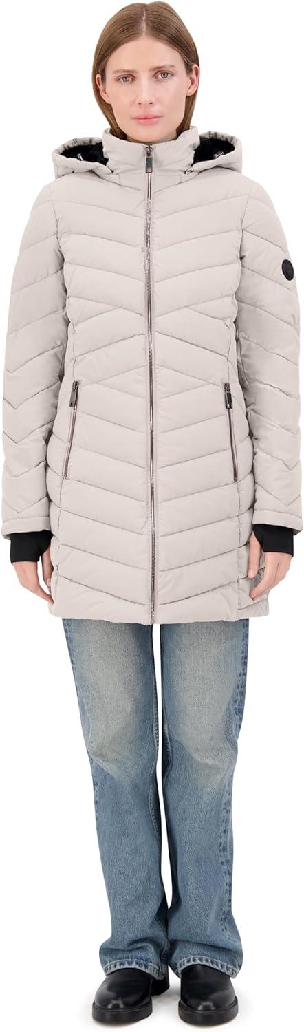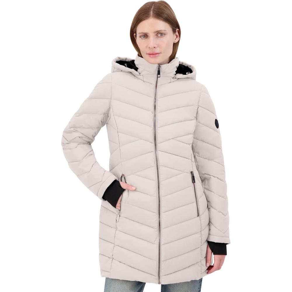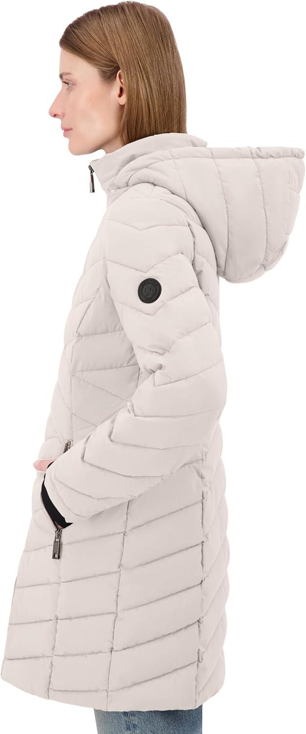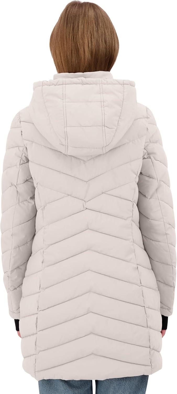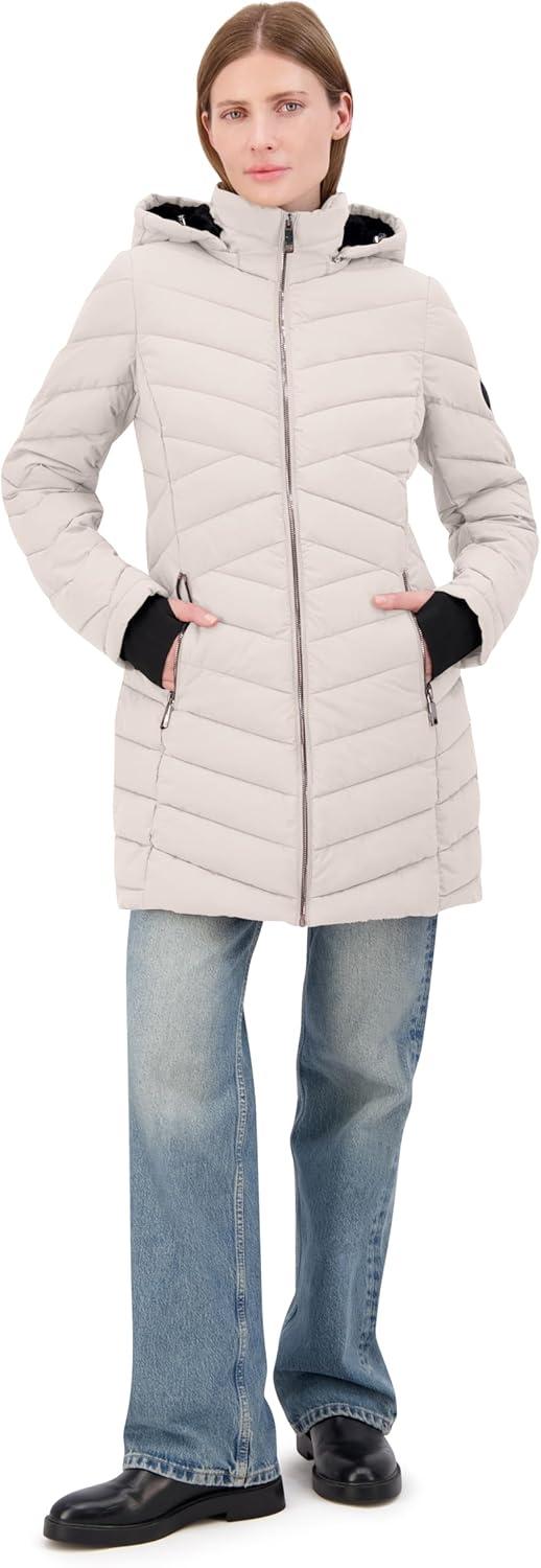 Nautica Women's Stretch Puffer Jacket with Faux Fur Lined Hood – Wind & Water-Resistant Winter Coat(Limestone)