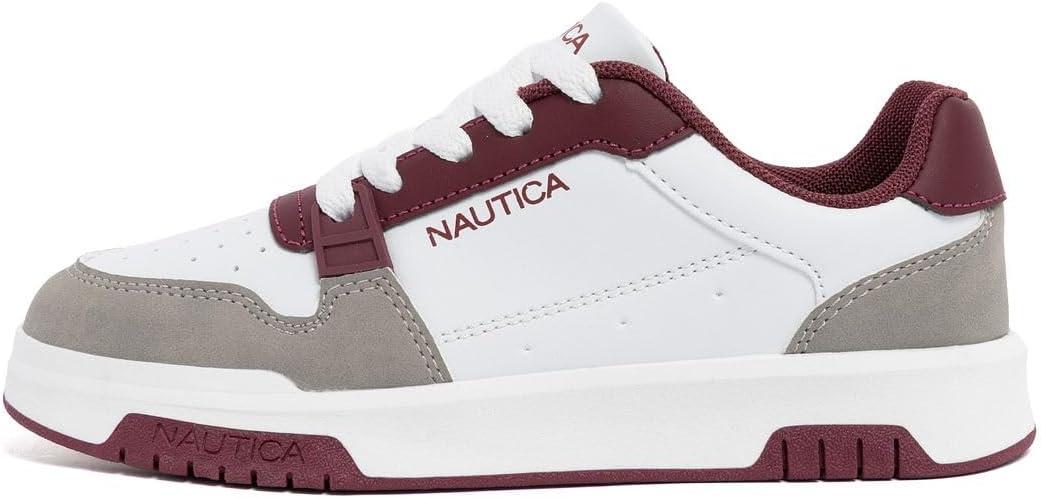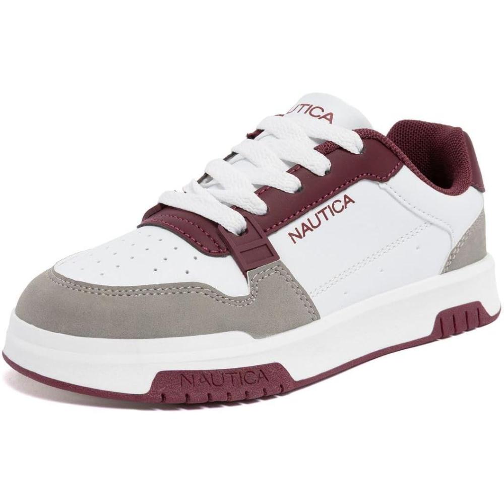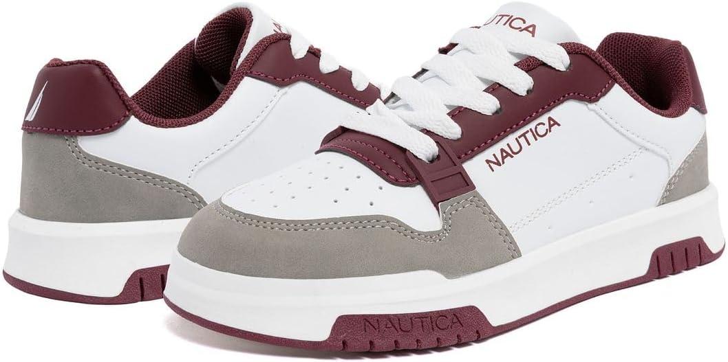 Nautica Youth Athletic Sneakers – Comfortable Lace-Up Tennis Shoes for Boys and Girls, Durable Casual Sport Footwear for School, Gym and Daily Wear(Burgundy Grey-gavie)